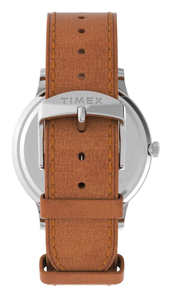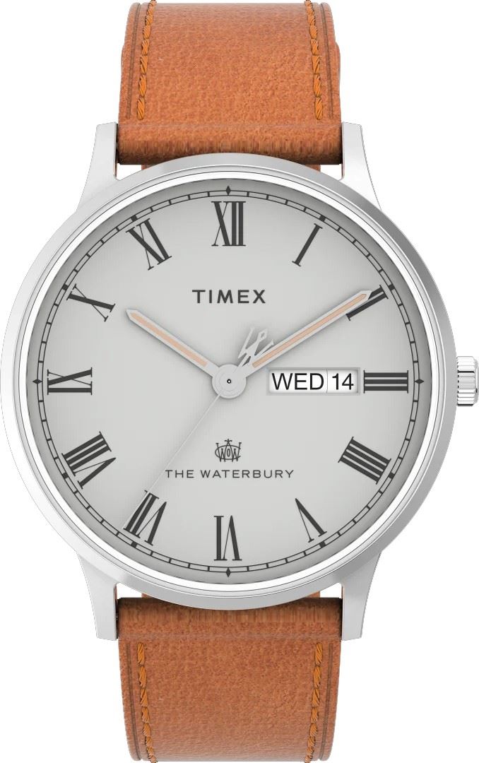 Pánské hodinky Timex Waterbury TW2V73600 pro volný čas jsou doplňkem s nadčasovým vzhledem a klasickým designem. Jsou vhodné pro každodenní nošení. Kožený řemínek v karamelové barvě je spojen s kulatým pouzdrem ze stříbrné nerezové oceli. Čitelnost šedého číselníku s římskými indexy a denním datem zajišťuje podsvícení Indiglo.