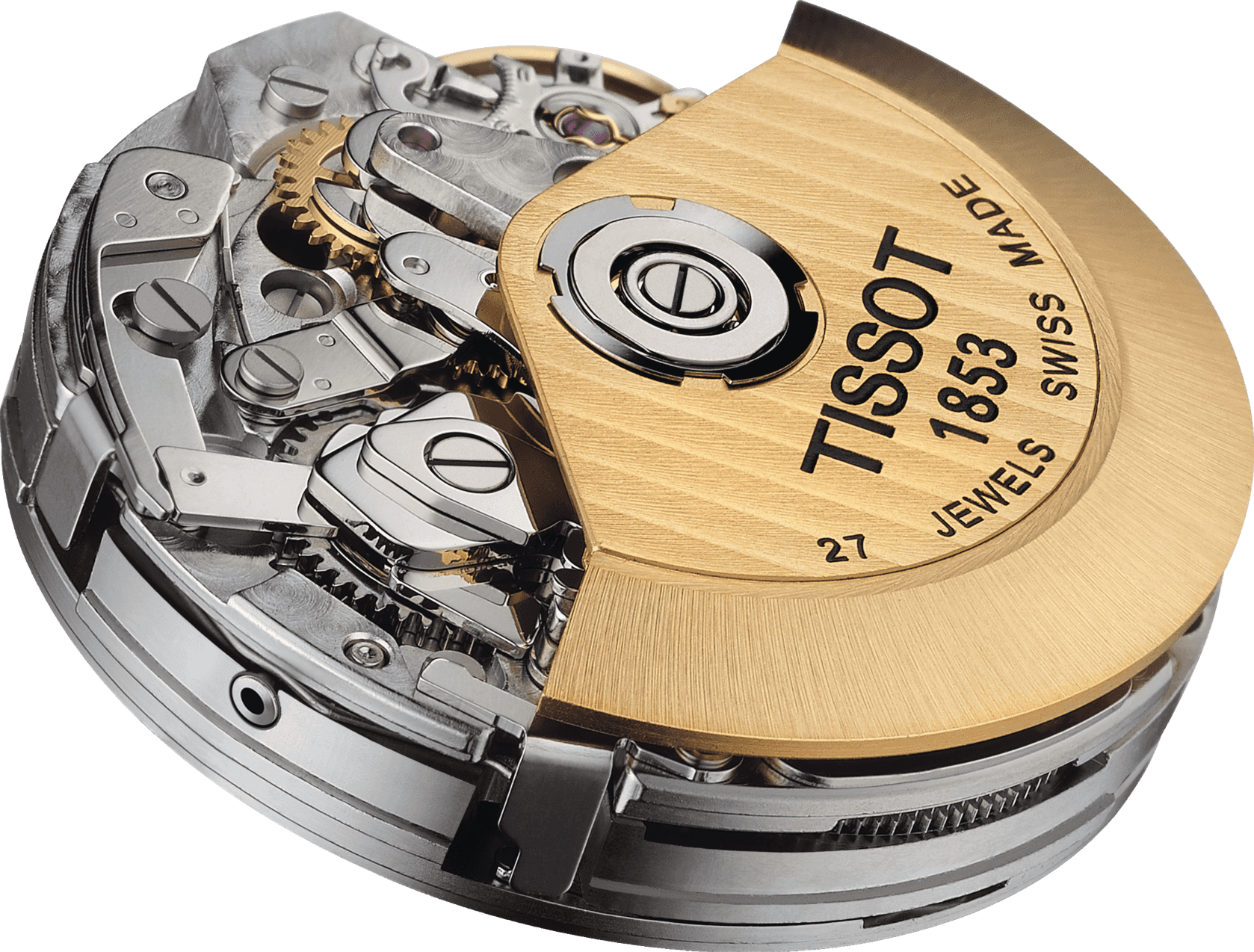 tvary, vypouklá či zaoblená až po kombinaci těchto variant. Dnes jsou již všechny hodinky značky Tissot osazeny těmito sklíčky pro trvanlivou krásu a čitelnost hodinek. Kalibr Eta Valjoux je robustní strojek s automatickým nátahem pera. Špičkový