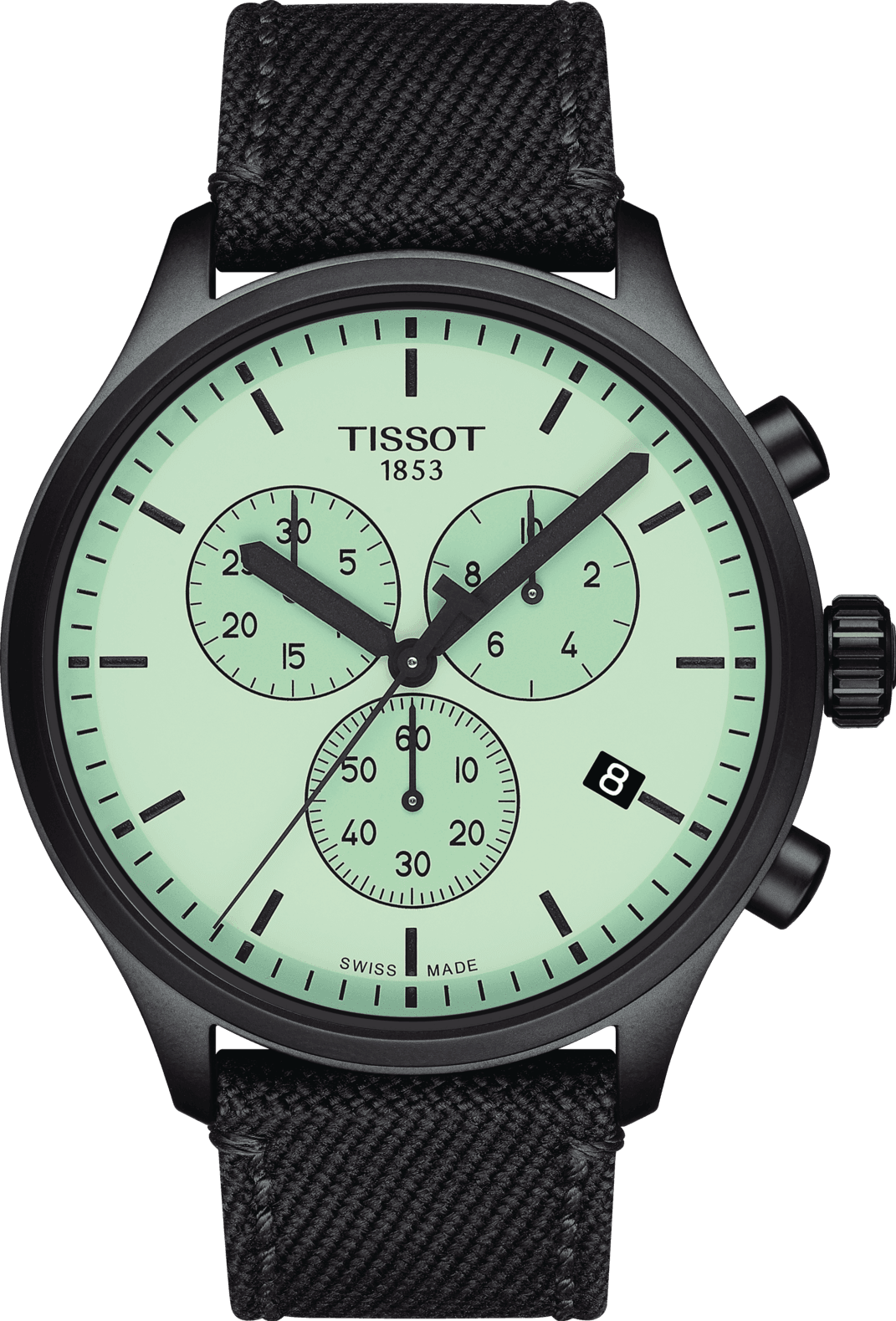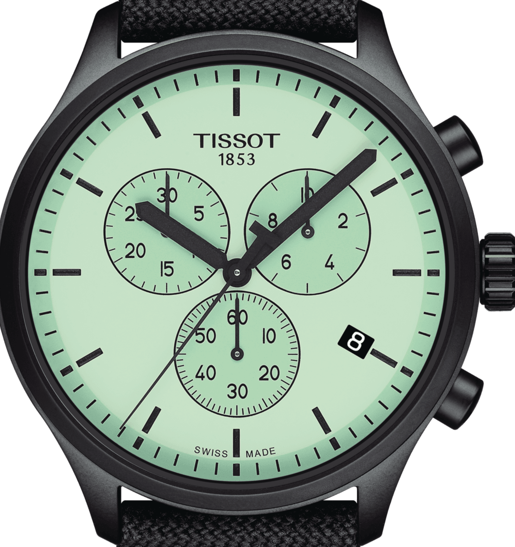 tvary, vypouklá či zaoblená až po kombinaci těchto variant. Dnes jsou již všechny hodinky značky Tissot osazeny těmito sklíčky pro trvanlivou krásu a čitelnost hodinek.Quartzový strojek Eta G10.212. Chronografový strojek švýcarské výroby osazen