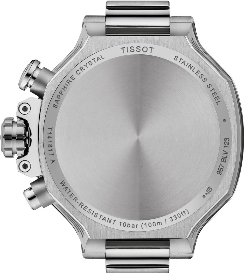 Tissot T-Race Quartz Chronograph T141.817.17.041.00 jsou švýcarské sportovní hodinky inspirované motocyklovými závody - luneta a ochrana korunky připomínají brzdový kotouč a třmen a celé pouzdro působí technicky a energicky. Ocelové pouzdro z 316L nerezové oceli má průměr 38 mm, tloušťku 11,46 mm a hmotnost přibližně 96 g, takže na ruce sedí pohodlně i při celodenním nošení. Kontrastní