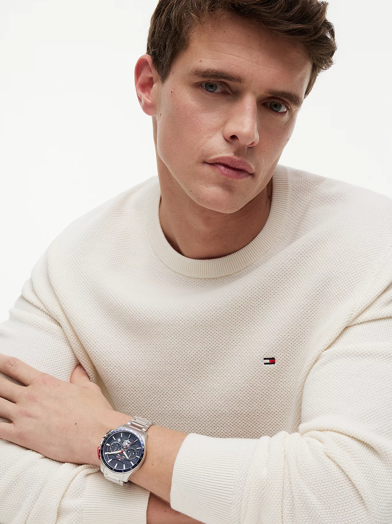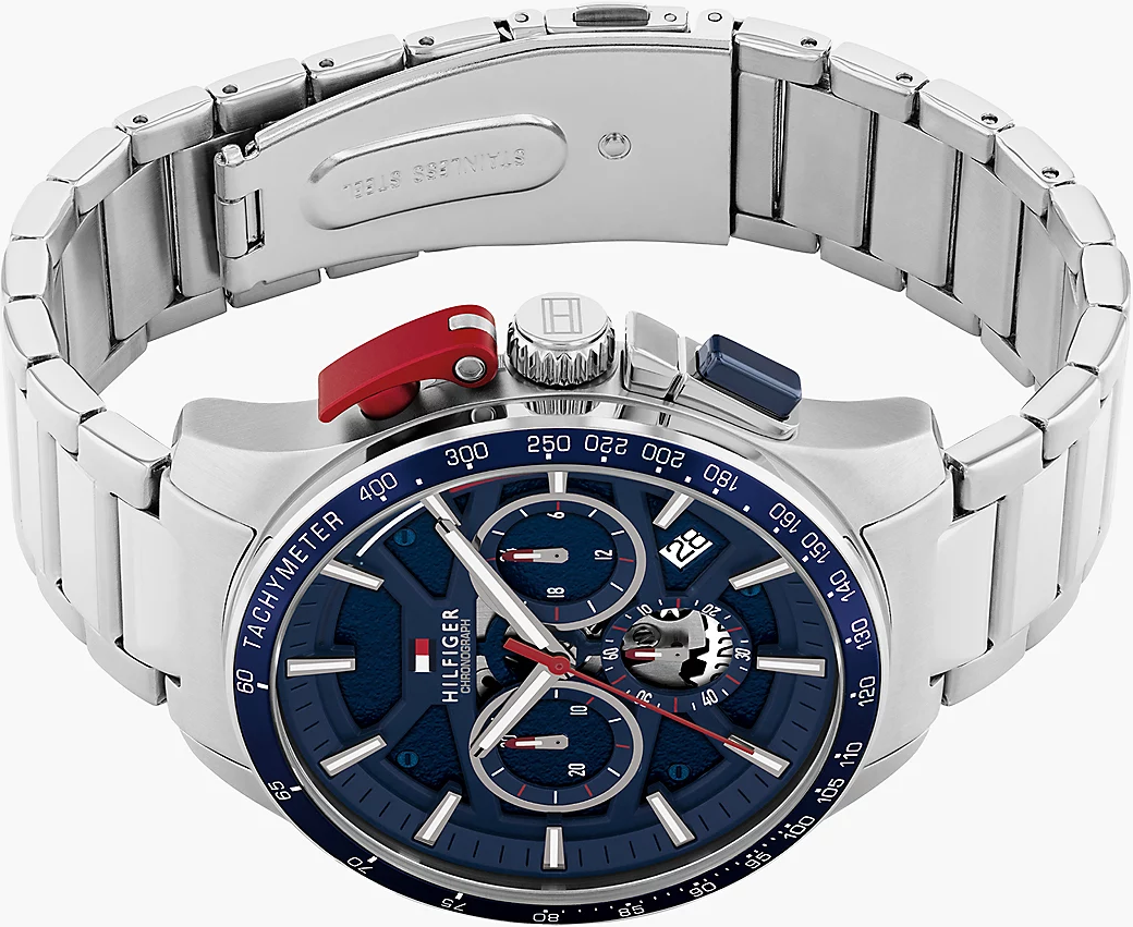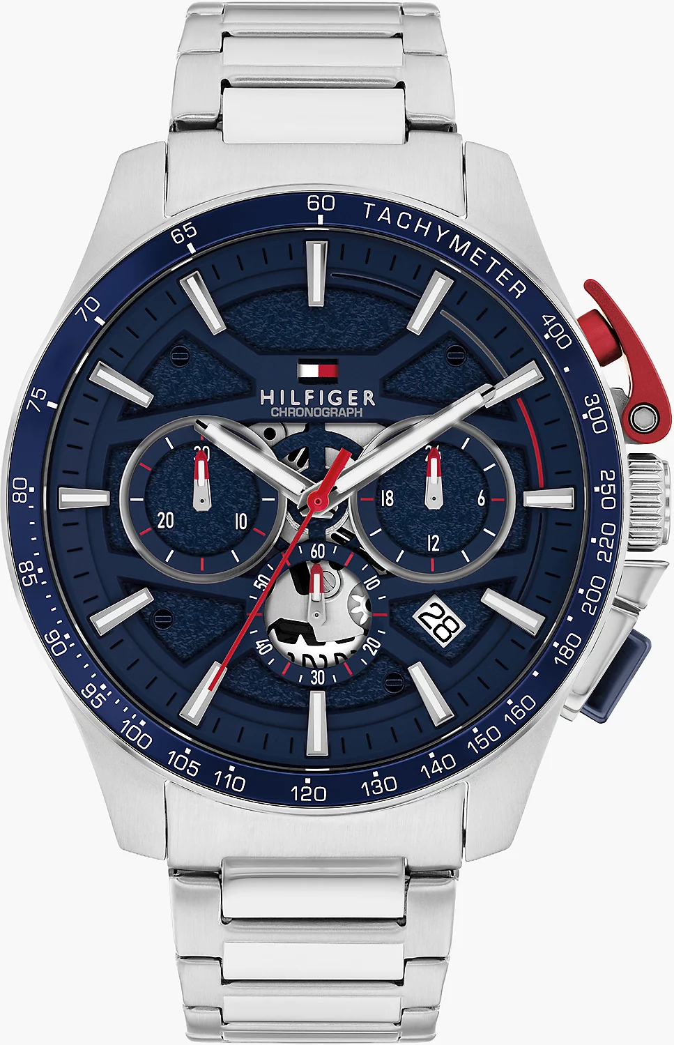 Tommy Hilfiger 1792261 (MWM1792261000) jsou pánské hodinky, které zaujmou sportovním vzhledem inspirovaným motorsportem a současně působí elegantně díky ocelovému provedení. Dominantou je kulatý modrý skeleton číselník s chronografem, na kterém vynikají výrazné detaily a typické prvky značky. Tento model je ideální, pokud hledáte pánské hodinky Tommy Hilfiger pro každodenní nošení, které dodají outfitu energii a prémiový dojem bez ...