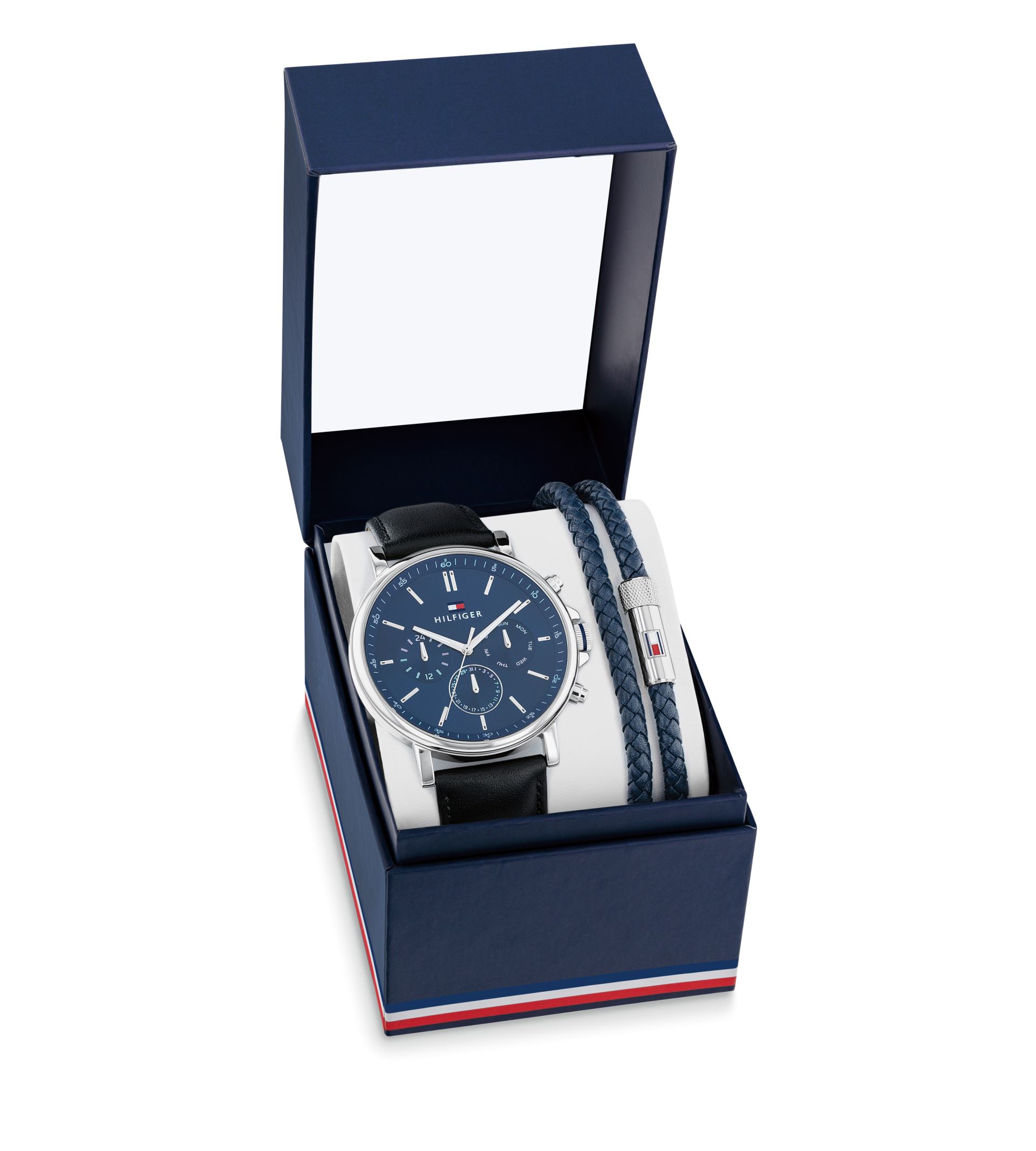 Pánské hodinky Tommy Hilfiger 2770161 v dárkové sadě s modrým koženým náramkem.