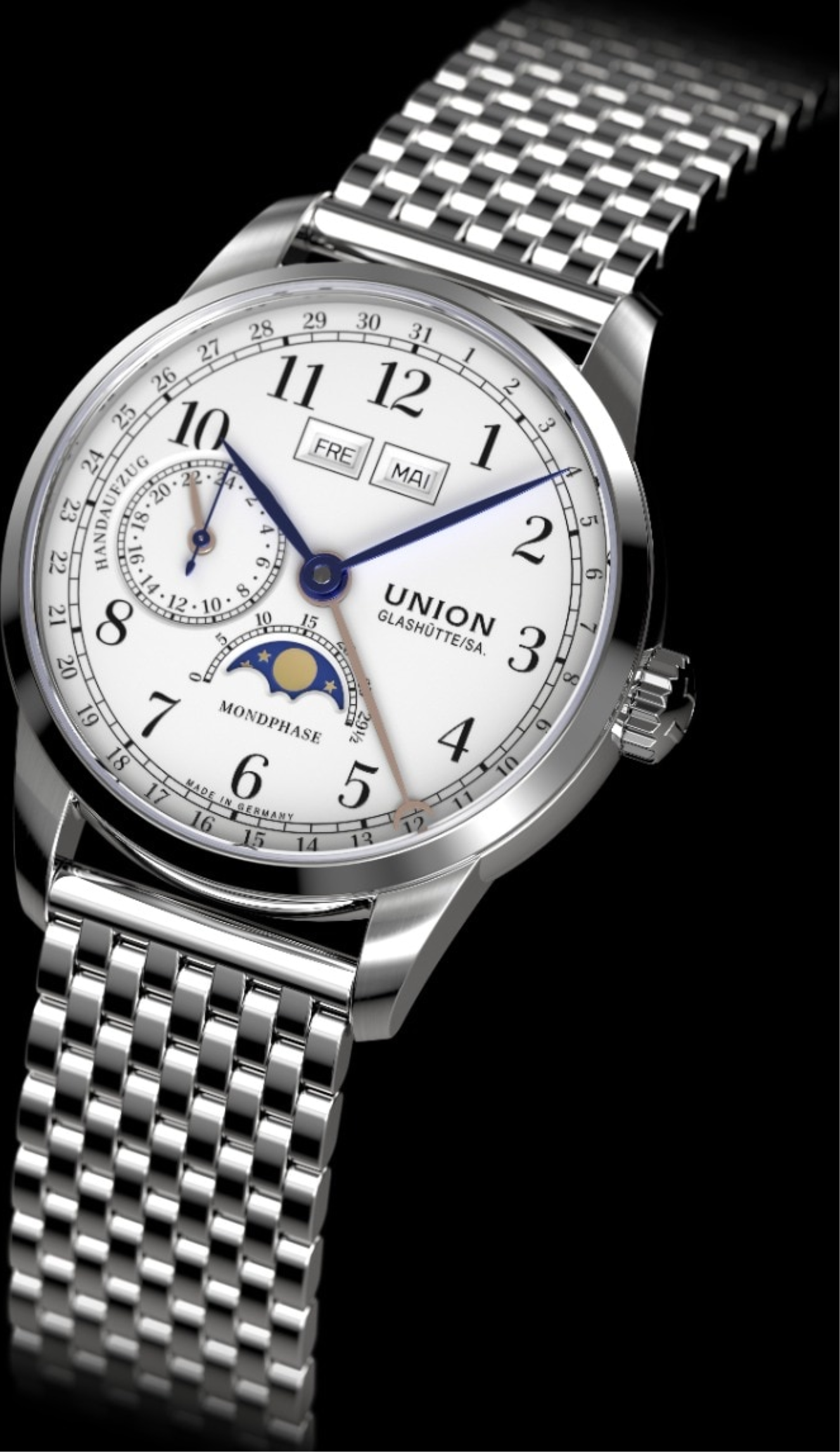 • Funkce a popis:Čas, datum, den v týdnu, měsíc, měsíční fáze, mechanický strojek cal. UNG-58.S1 upravovaný ručně hodinářem pro maximální možnou kvalitu a estetiku, ruční nátah - hodinky se natahují korunkou, výška strojku pouhých 5,20 mm, polokmity setrvačky 28.800/h = přesnost chodu 2 - 4 vteřiny denně, křemíkový vlásek = téměř antimagnetický s bezkonkurenční stabilitou pro přesnost chodu a větší stabilitou proti případným nárazům či otřesům hodinek během nošení (zvyšuje přesnost hodinek), rezerva chodu = 60 hodin, 20 kamenových uložení, krokové ústrojí ocel/kámen, modřené ručičky