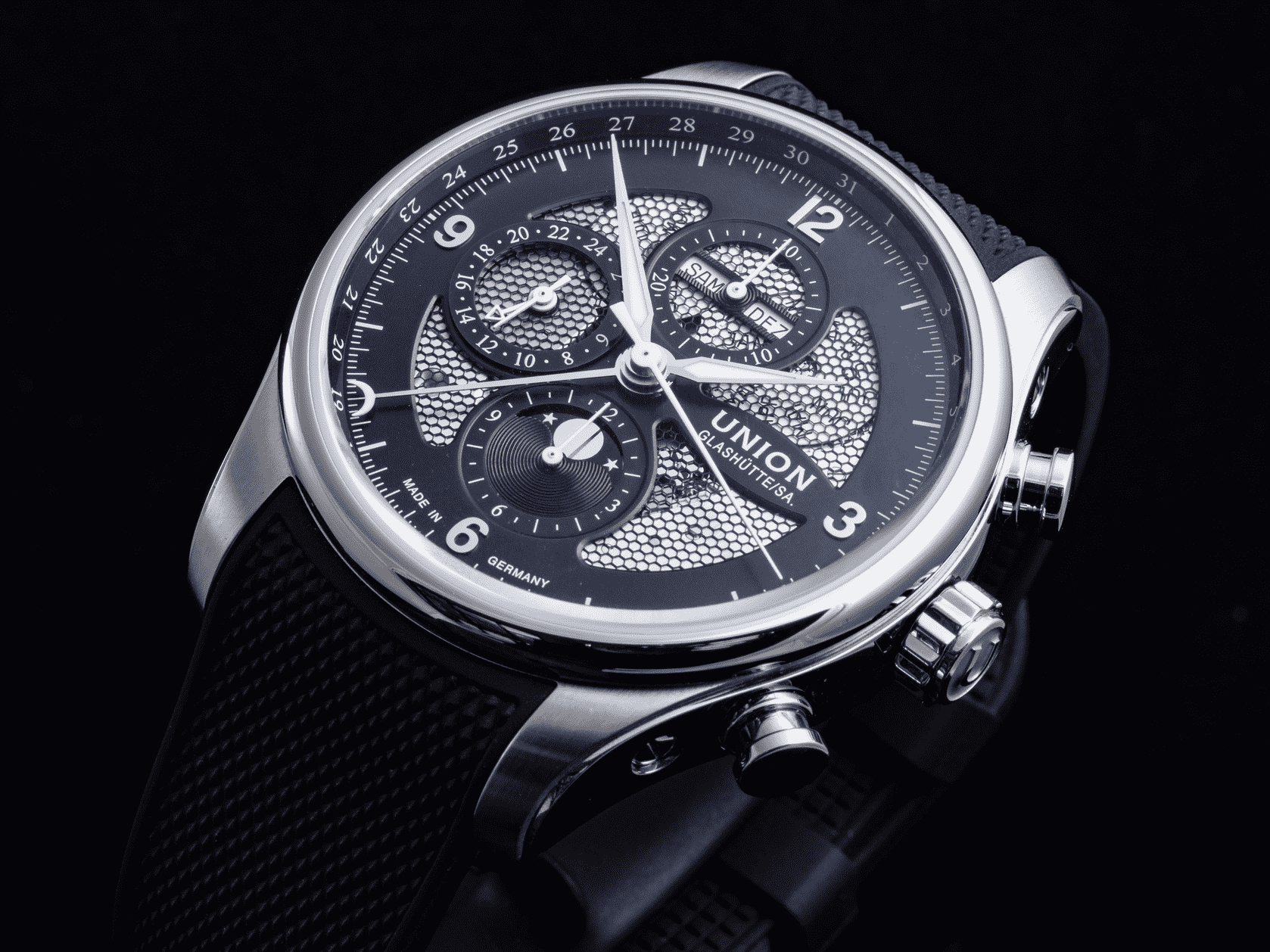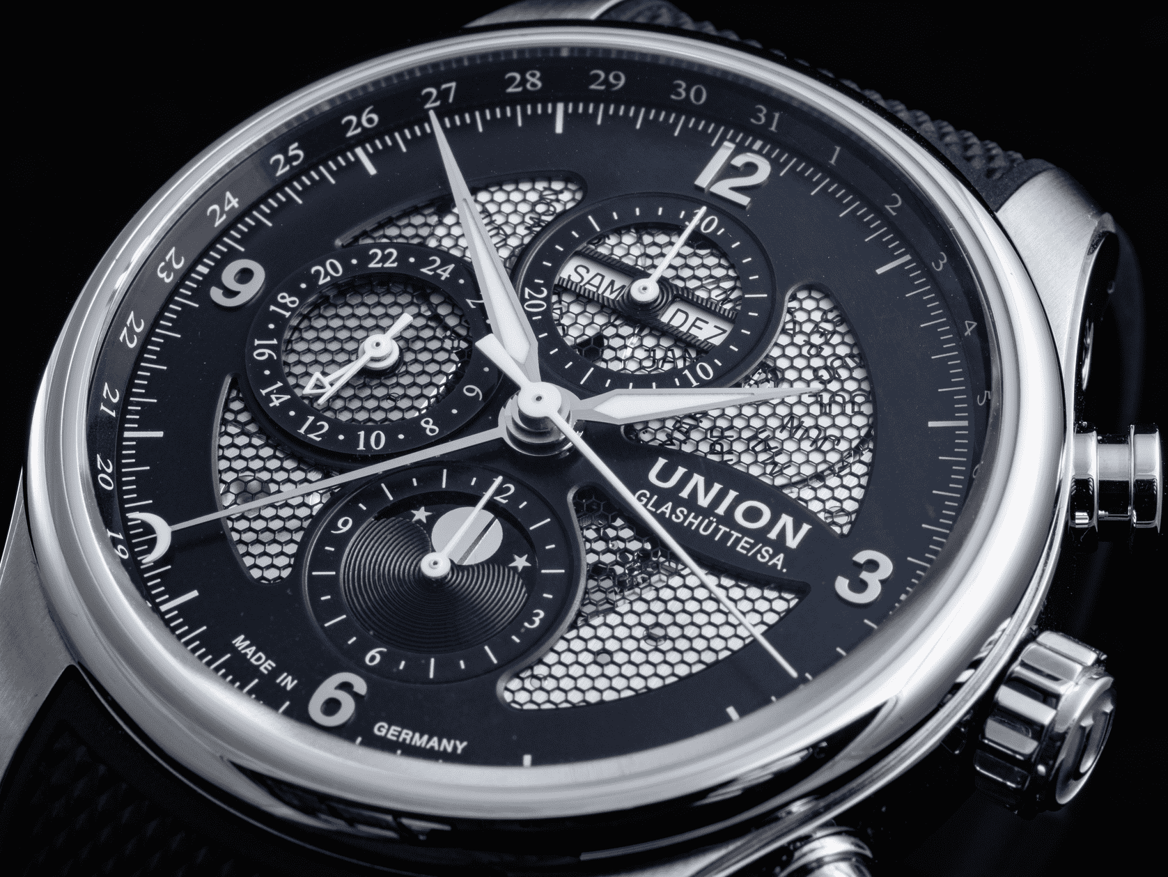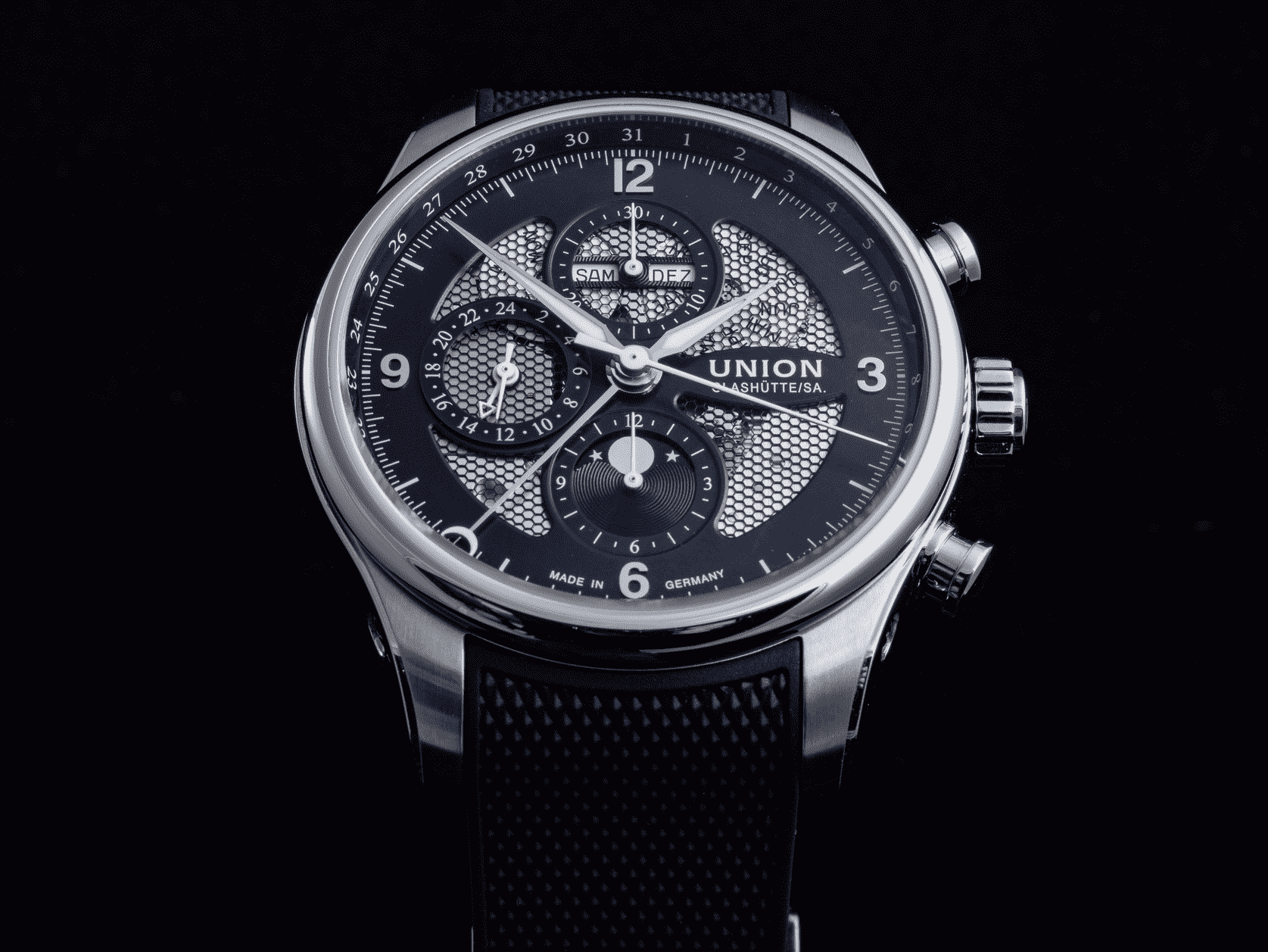 Zobrazení fáze měsíce je jednou z nejtradičnějších komplikací v hodinářství. UNION GLASHÜTTE mu dal moderní facelift: Kulaté 44 mm pouzdro z nerezové oceli s nápadným designem číselníku poskytuje perfektní kulisu pro Belisar Chronograph Moon PhaseTlačítka na mechanismu chronografu jsou doplněna diskrétním korektorem umístěným na 10. hodině, který uživateli umožňuje samostatně nastavit den v týdnu.  ...