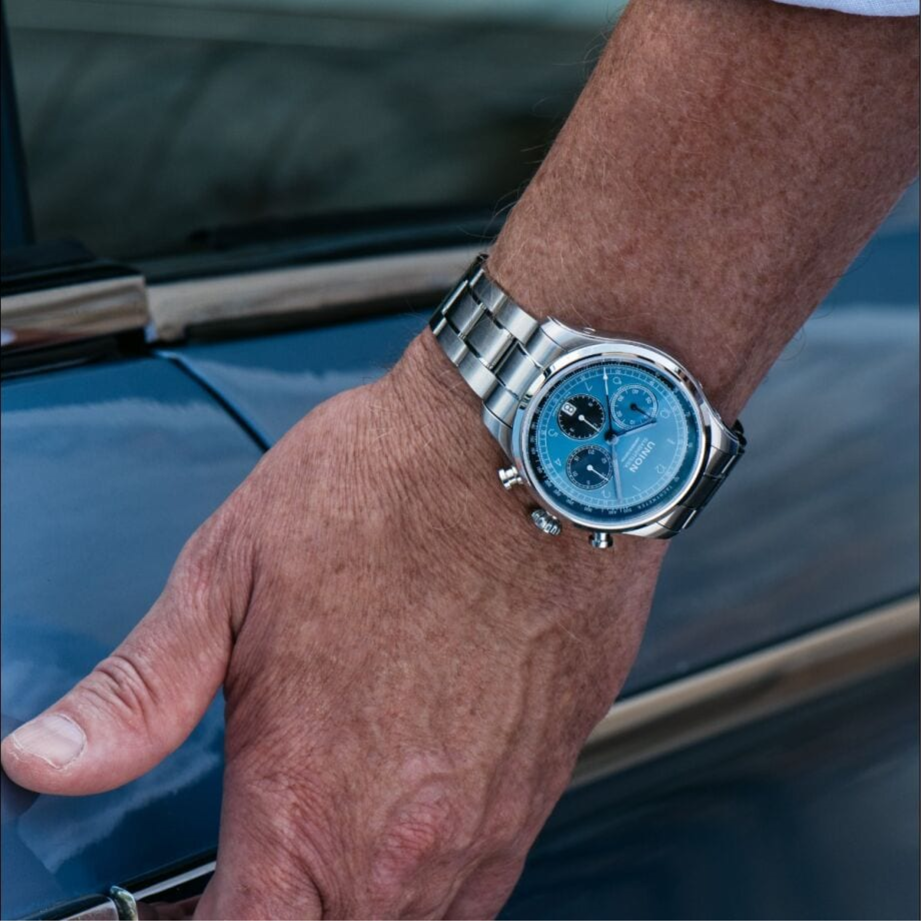 • Funkce a popis:Čas, datum, chronograf = stopky, automatický strojek Germany cal. UNG-27.S1 upravovaný ručně hodinářem pro maximální možnou kvalitu a estetiku (25 kamenových uložení), polokmity setrvačky 28.800/h = přesnost chodu 2 - 4 vteřiny denně, křemíkový vlásek - téměř antimagnetický s bezkonkurenční stabilitou pro přesnost chodu a větší stabilitou proti případným nárazům či otřesům hodinek během nošení (zvyšuje přesnost hodinek), rezerva chodu = 65 hodin, krokové ústrojí ocel/kámen, automatický nátah (hodinky se natahují pohybem ruky) + ruční nátah (hodinky lze natáhnout/dotáhnout dle potřeby i ručně korunkou, ručičky a indexy jsou opatřeny tenkou vrstvou luminiscence (luminiscenční vrstva po nasvícení dlouhou dobu svítí, což je praktické za šera a v noci)