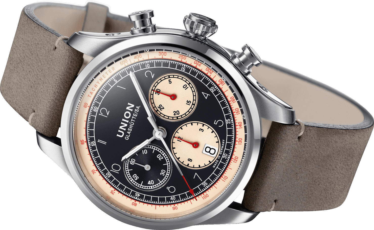 • Funkce a popis:Čas, datum, chronograf = stopky, automatický strojek Germany cal. UNG-27.01 upravovaný ručně hodinářem pro maximální možnou kvalitu a estetiku (27 kamenových uložení), polokmity setrvačky 28.800/h = přesnost chodu 2 - 4 vteřiny denně, jemná regulace pro vysokou přesnost hodinek, rezerva chodu = 60 hodin, krokové ústrojí ocel/kámen, automatický nátah (hodinky se natahují pohybem ruky) + ruční nátah (hodinky lze natáhnout/dotáhnout dle potřeby i ručně korunkou, ručičky a indexy jsou opatřeny tenkou vrstvou luminiscence (luminiscenční vrstva po nasvícení dlouhou dobu svítí, což je praktické za šera a v noci)
