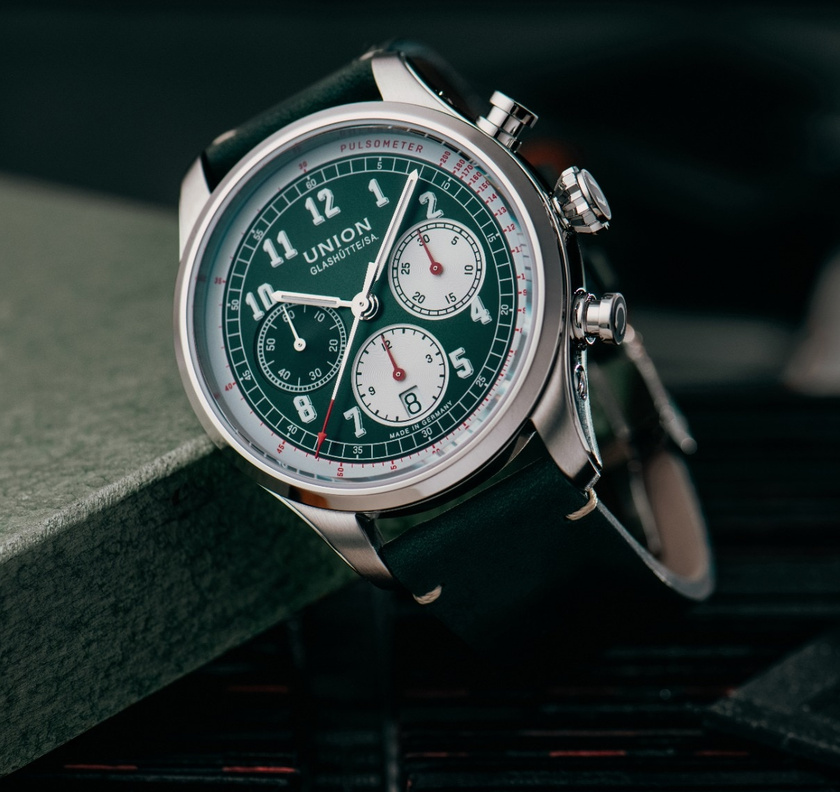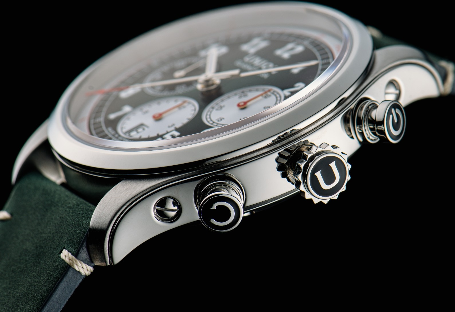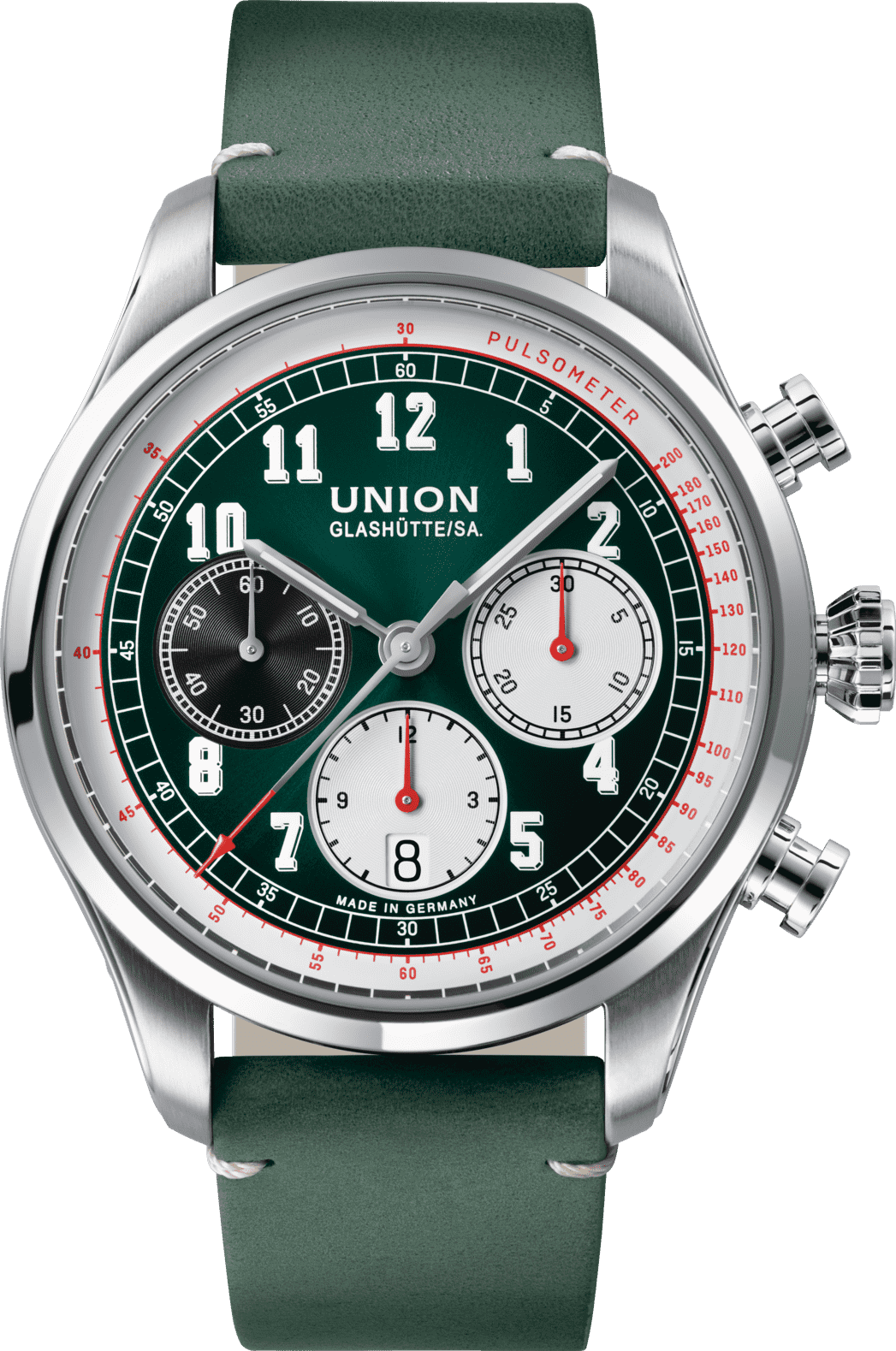 • Funkce a popis:Čas, datum, chronograf = stopky, automatický strojek Germany cal. UNG-27.S1 upravovaný ručně hodinářem pro maximální možnou kvalitu a estetiku (29 kamenových uložení), polokmity setrvačky 28.800/h = přesnost chodu 2 - 4 vteřiny denně, křemíkový vlásek - téměř antimagnetický s bezkonkurenční stabilitou pro přesnost chodu a větší stabilitou proti případným nárazům či otřesům hodinek během nošení (zvyšuje přesnost hodinek), rezerva chodu = 65 hodin, 28.800 polokmitů setrvačky za hodinu = přesnost chodu 2 - 4 vteřiny denně, krokové ústrojí ocel/kámen, automatický nátah (hodinky se natahují pohybem ruky) + ruční nátah (hodinky lze natáhnout/dotáhnout dle potřeby i ručně korunkou, ručičky a indexy jsou opatřeny tenkou vrstvou luminiscence (luminiscenční vrstva po nasvícení dlouhou dobu svítí, což je praktické za šera a v noci)