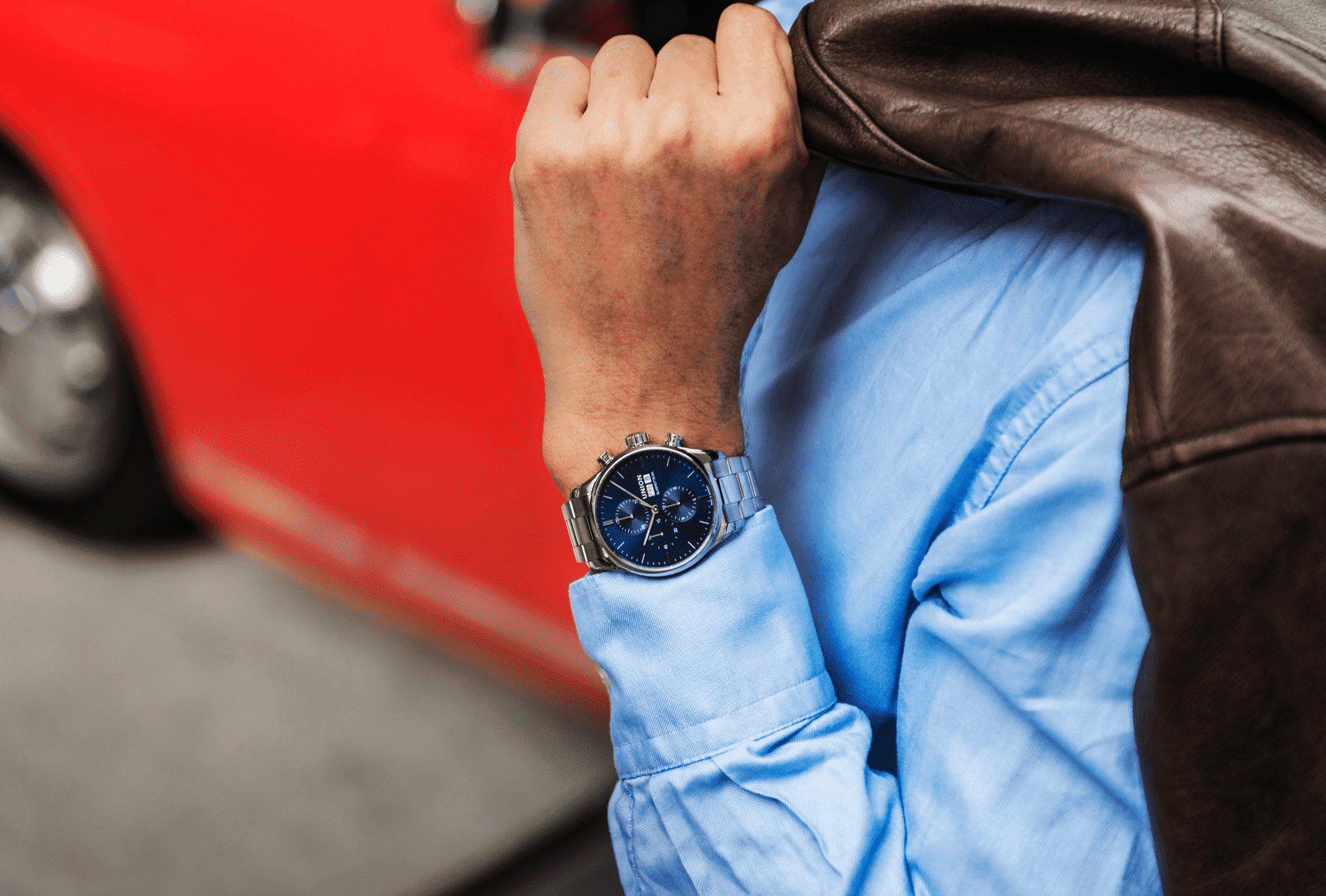 S vysoce výraznými hodinkami Viro Chronograph můžete doslova držet čas ve svých rukou. Kulaté pouzdro těchto hodinek z nerezové oceli o průměru 44 mm nabízí funkce start, stop a reset pro měření krátkých časových úseků – to vše pouhým stisknutím tlačítka. Oboustranně antireflexní nepoškrabatelné safírové sklíčko zajišťuje perfektní čitelnost.  ...