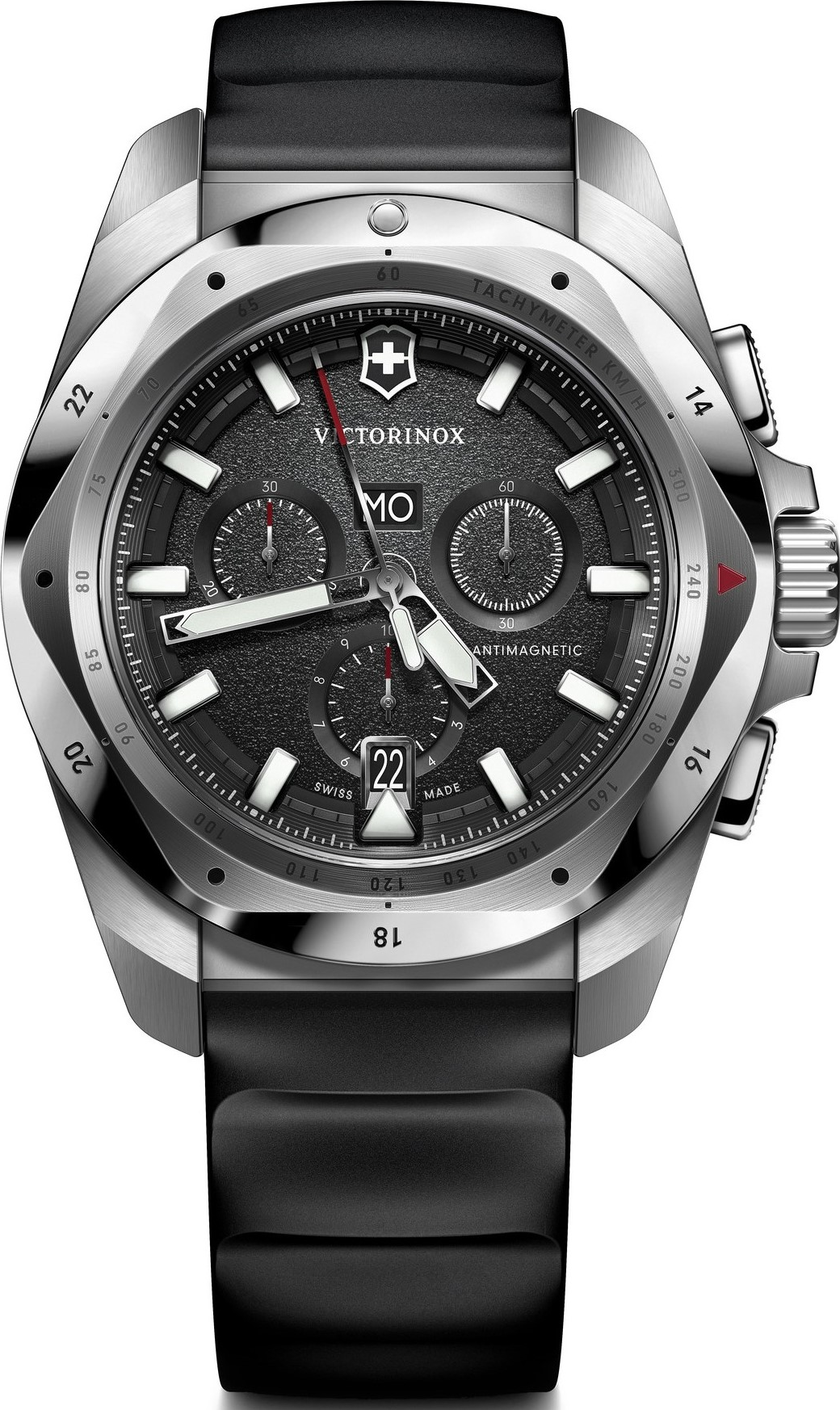 Victorinox I.N.O.X. 241983 je pánský švýcarský chronograf, který staví na technické logice řady I.N.O.X. a současně přidává výraznější funkční výbavu pro muže, kteří chtějí od hodinek víc než jen základní zobrazení času. Tato reference působí robustně, čistě a velmi současně. Černý číselník se zrnitou povrchovou úpravou je přehledný a dobře kontrastuje se stříbrným pouzdrem i stříbrnou pevnou lunetou. Celek je doplněn černým pryžovým řemínkem, takže hodinky působí sportovně, ale ...