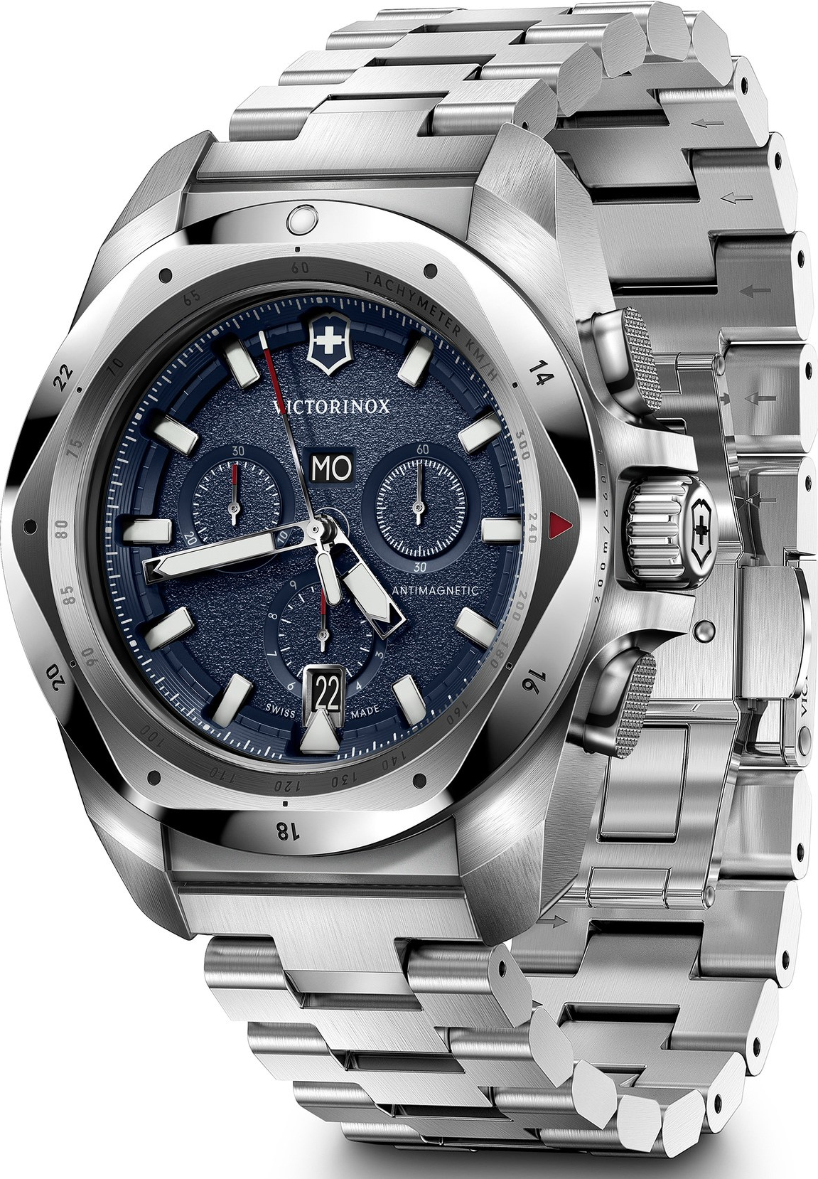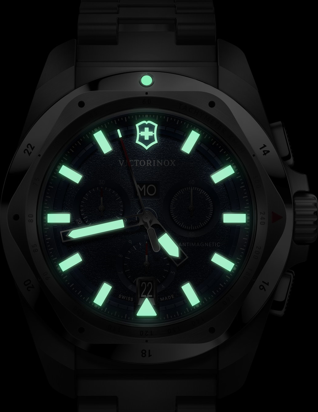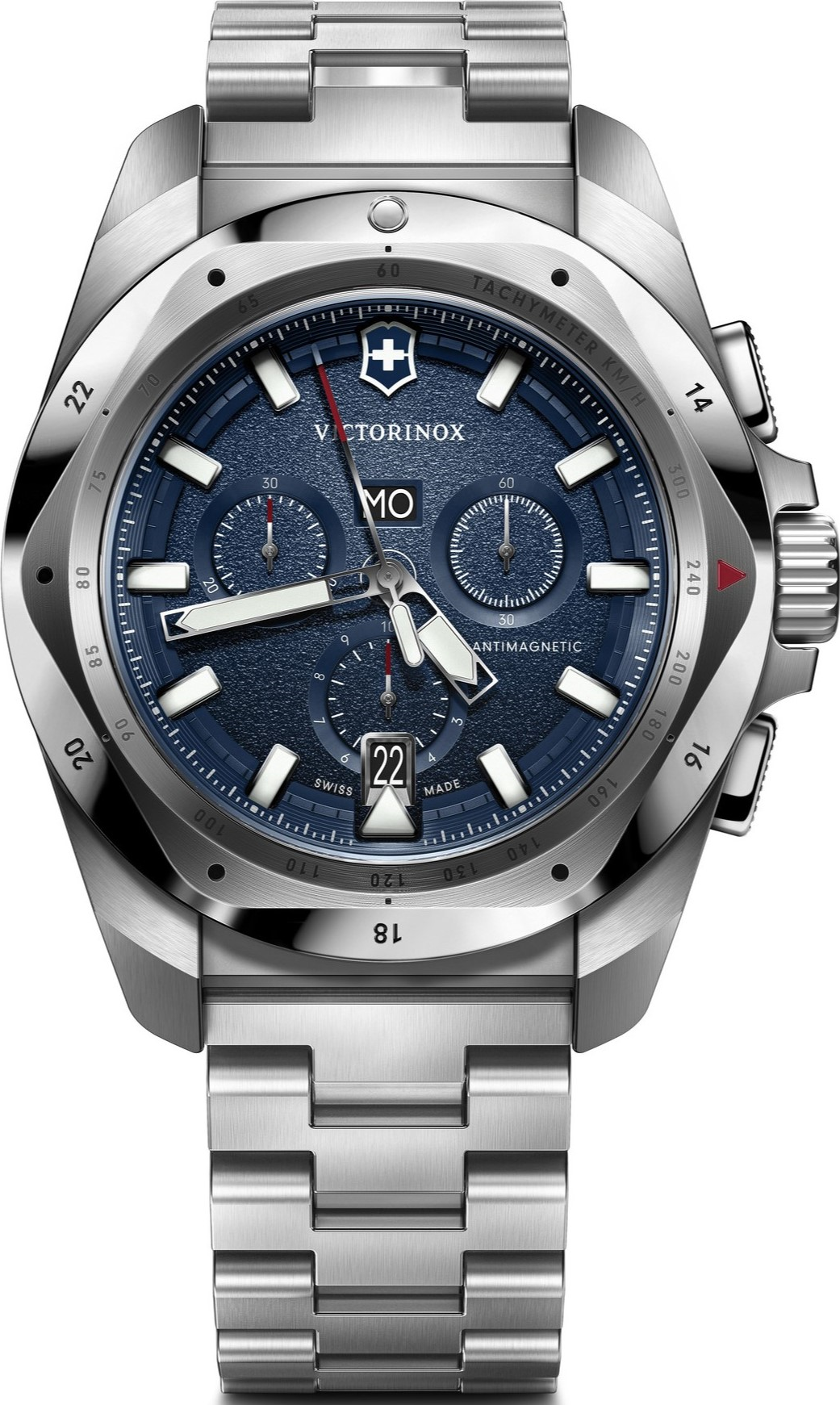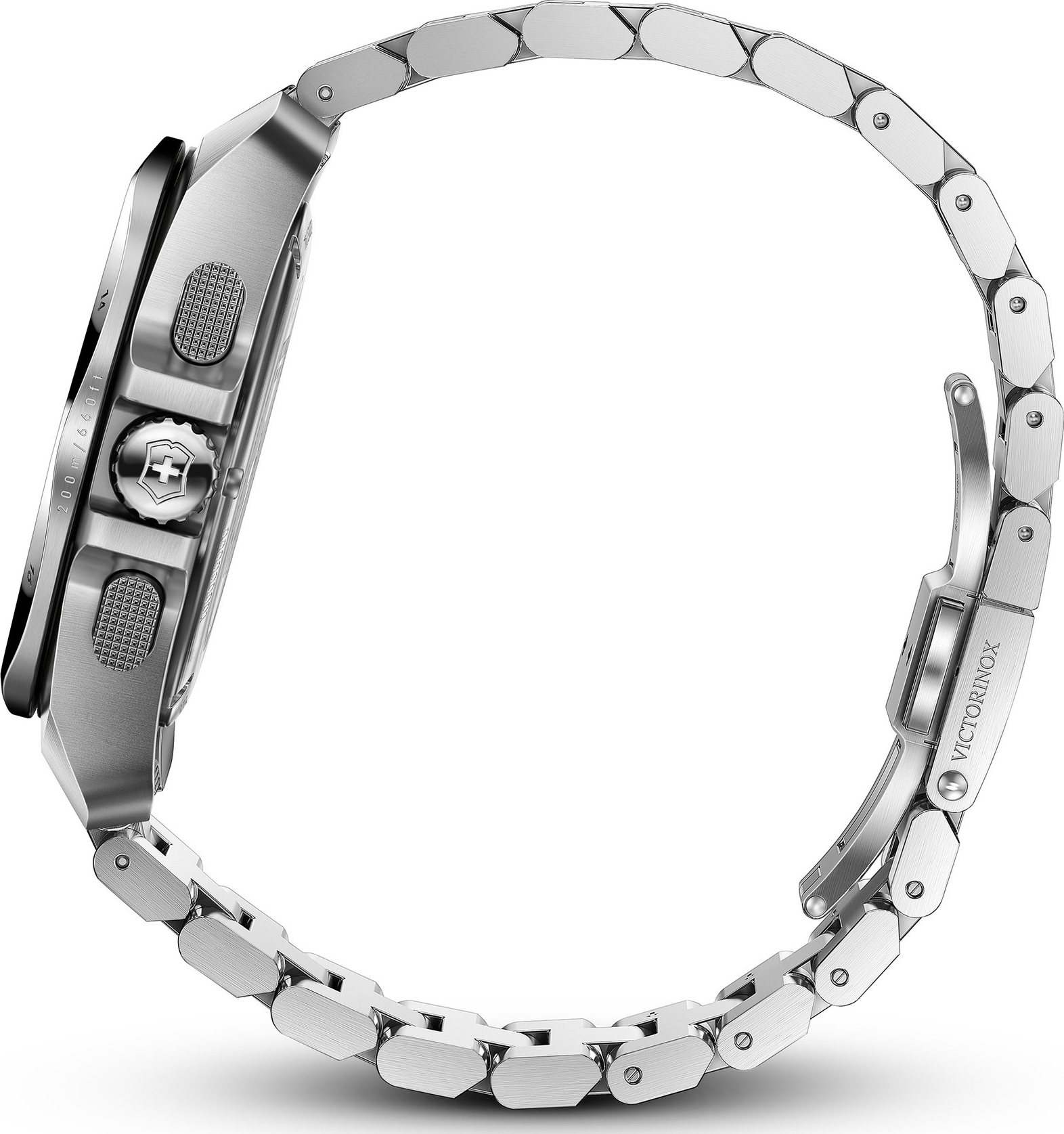 Victorinox I.N.O.X. Chrono 241985 je pánský švýcarský chronograf, který spojuje technickou robustnost řady I.N.O.X. s klasičtějším a reprezentativnějším vzhledem díky plně ocelovému provedení. Tato reference je určena pro muže, kteří chtějí stopky, vysokou odolnost a přitom dávají přednost hodnotnému vzhledu kovového náramku před pryžovým sportovním řemenem. Victorinox u této reference výslovně uvádí pouzdro a lunetu z 60 až 70 procent recyklované nerezové oceli a náramek z 89 procent ...