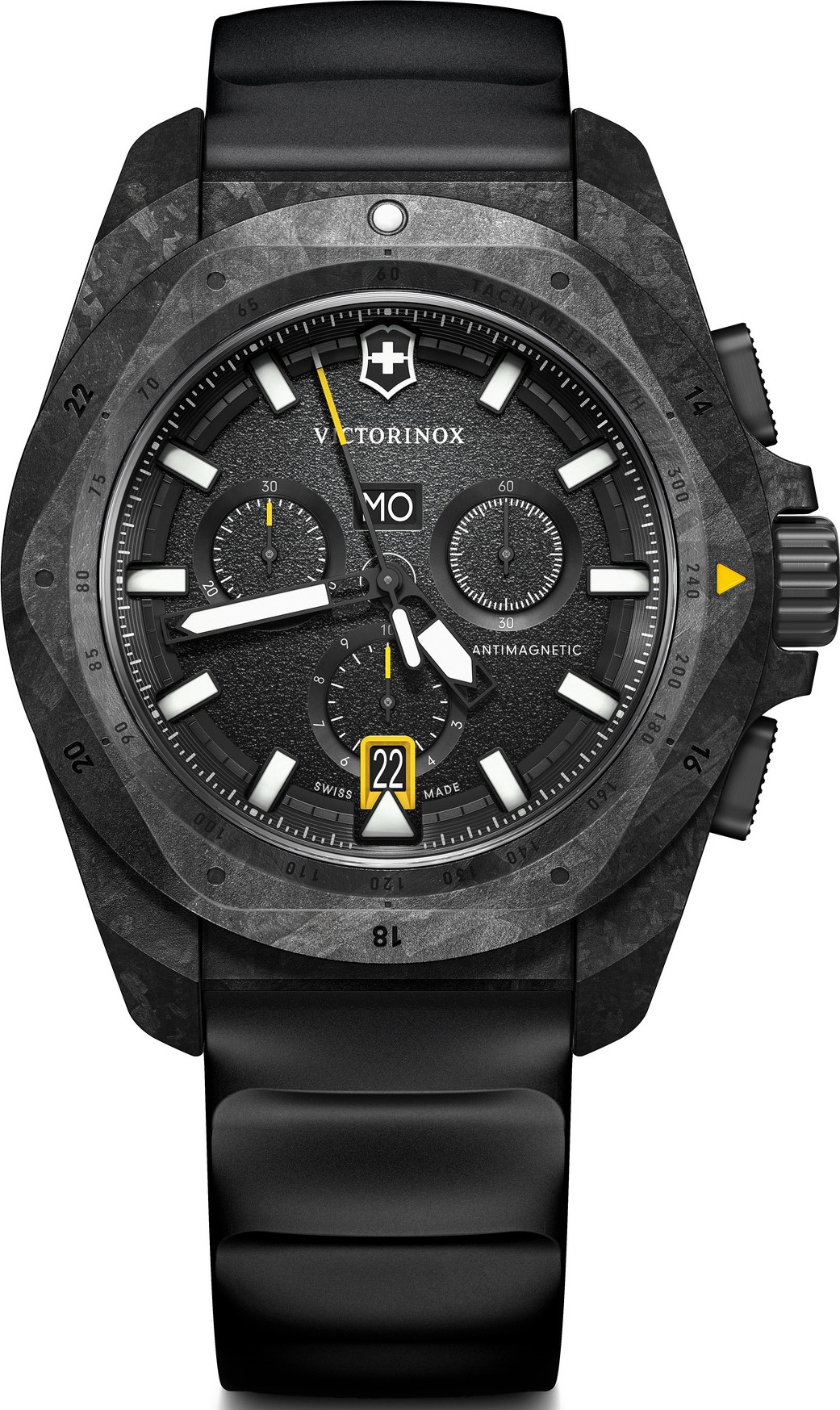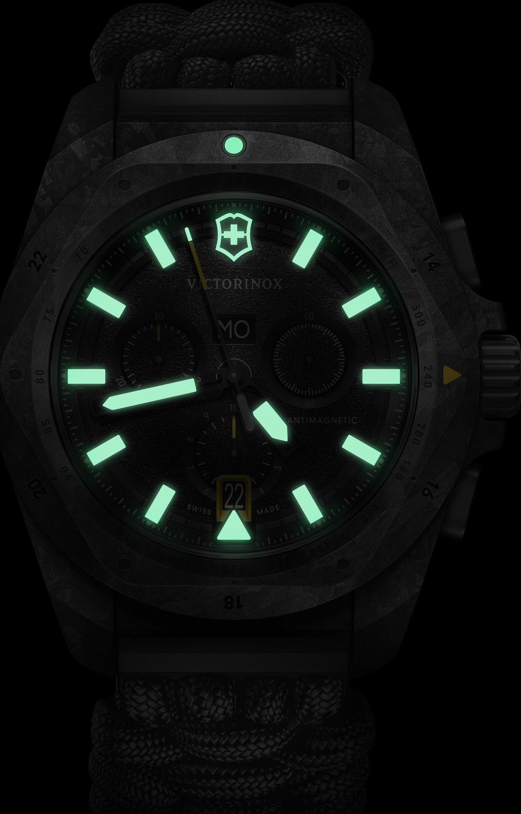 Victorinox I.N.O.X. Chrono 241989.1 je výrazný pánský švýcarský chronograf, který kombinuje lehkost karbonové konstrukce, robustní technické řešení a mimořádně osobitý vzhled. Tato reference se od klasických ocelových variant liší už na první pohled. Černé karbonové pouzdro, černá karbonová luneta, černý číselník s grainy úpravou a černý paracord vytvářejí velmi kompaktní, takřka taktický výraz. Victorinox zde výslovně zdůrazňuje, že jde o lehký, ale velmi odolný model, který je ...