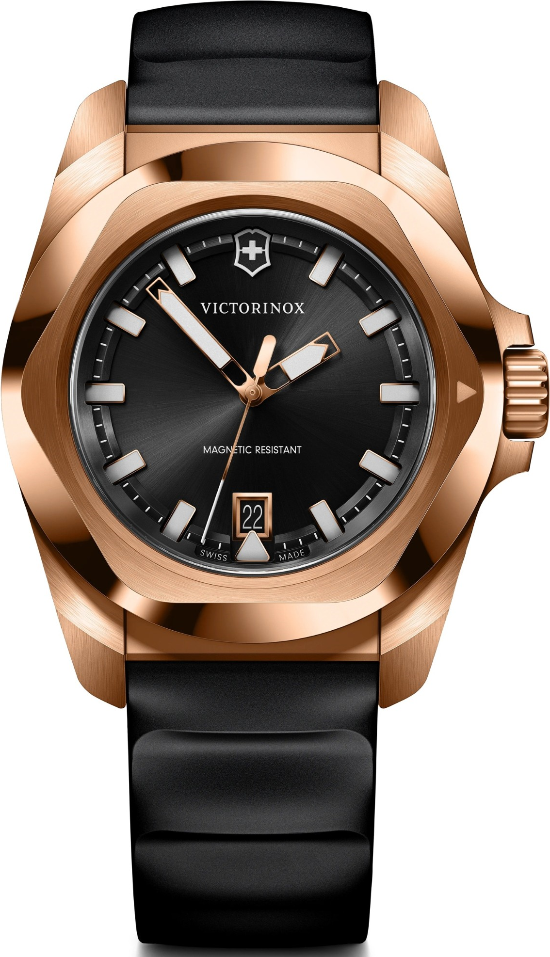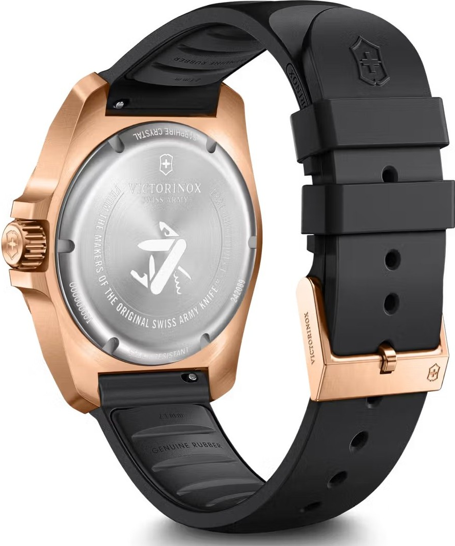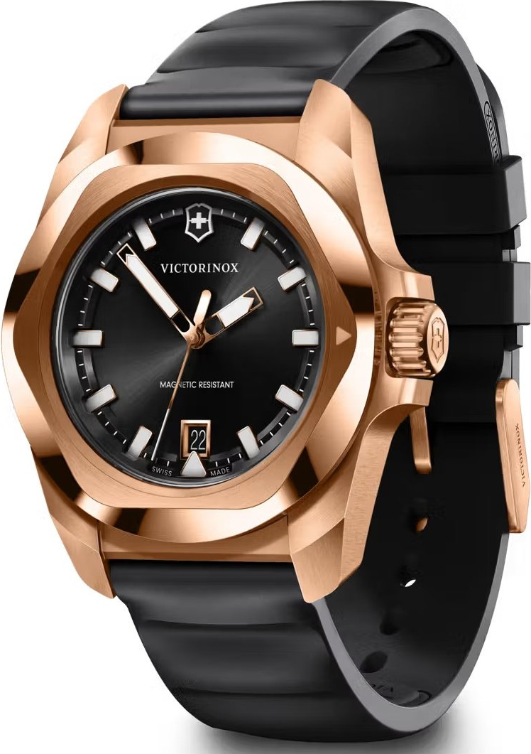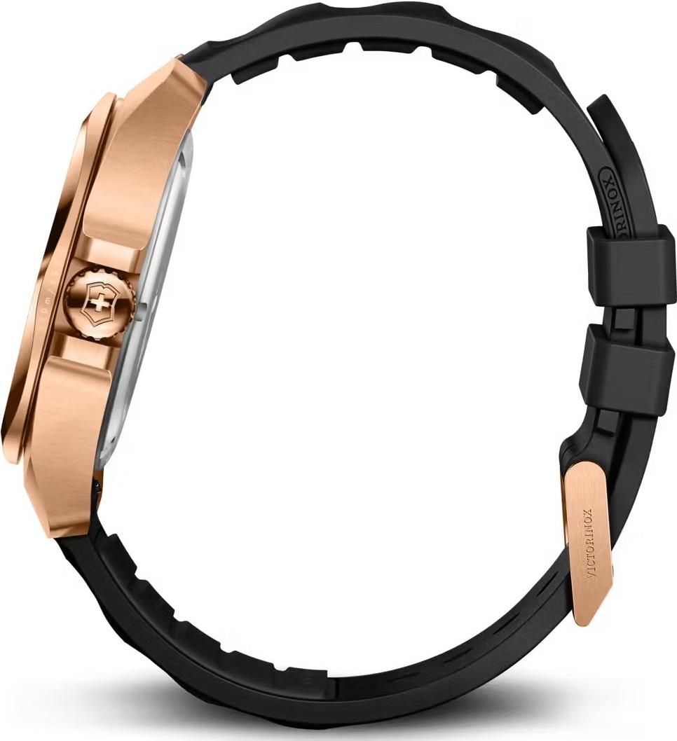 Victorinox I.N.O.X. Quartz 242089 je moderní sportovně elegantní reference, která kombinuje pouzdro i lunetu v tónu růžového zlata s černým pryžovým řemínkem. Jde o velmi stylovou variantu nové generace I.N.O.X. Quartz, která jasně míří na zákazníka hledajícího odolné švýcarské hodinky s elegantnějším a luxusněji působícím vzhledem. Victorinox zde dokázal spojit výraznější barevné pojetí s technickou strohostí a funkční logikou celé řady. Číselník má sunray brushed úpravu, takže ...