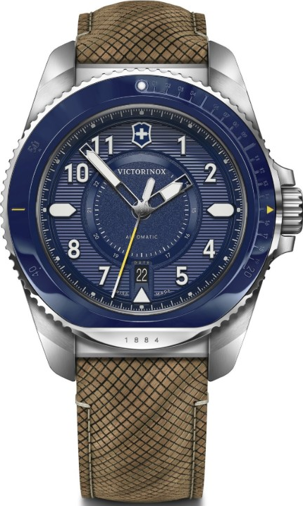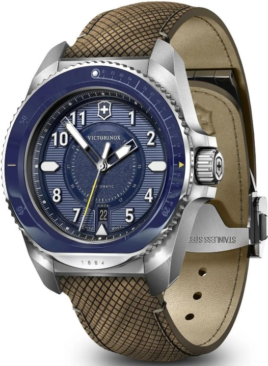 Victorinox Journey 1884 Automatic 241980.1 jsou pánské švýcarské automatické hodinky, které spojují městskou eleganci se sportovní odolností. Modrý číselník v matné úpravě působí čistě a moderně, zároveň nabídne praktické datumové okénko i přehlednou 24hodinovou stupnici. Charakter modelu podtrhuje jednosměrně otočná luneta s keramickou vložkou - funkční detail pro měření času a ...
