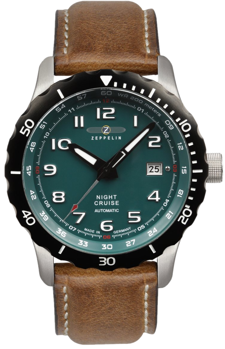• Funkce a popis:Čas, datum, strojek Cal.9015 (24 kamenů) - rezerva chodu 42 hodin, kmity setrvačky 28.800/h = přesnost chodu 3 - 4 vteřiny denně, svítící ručky a indexy SuperLuminova, otočná luneta, průhledné zadní víčko pro náhled na strojek