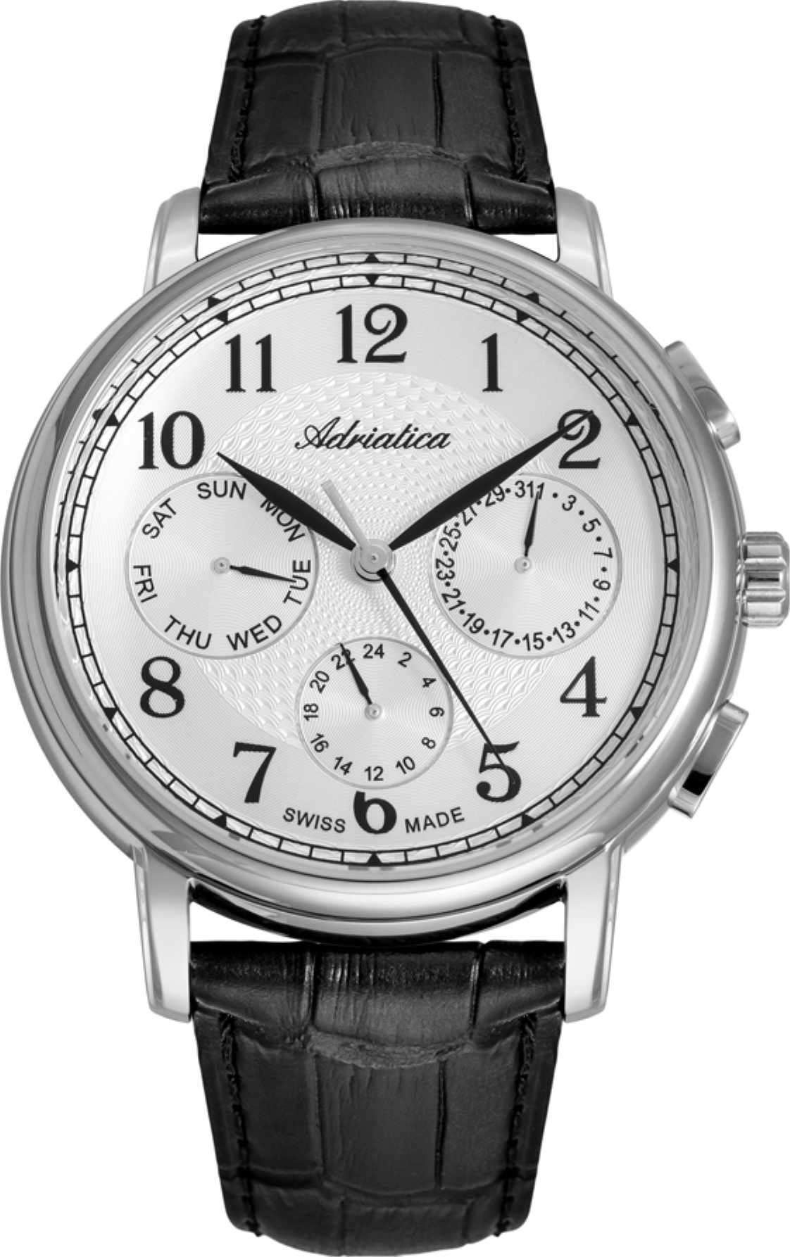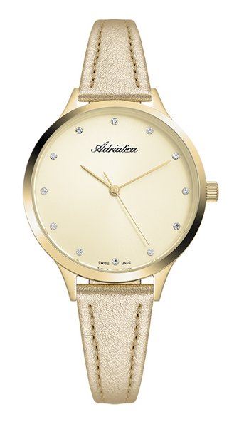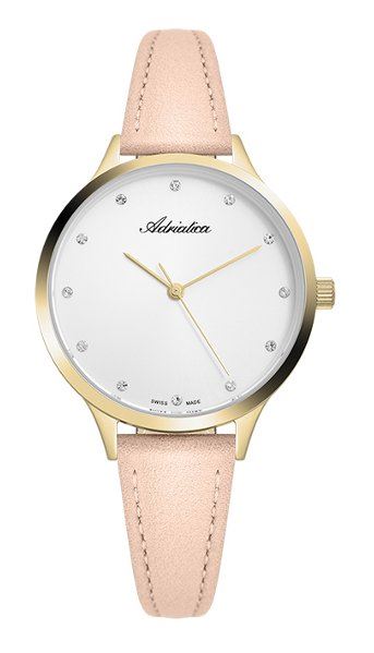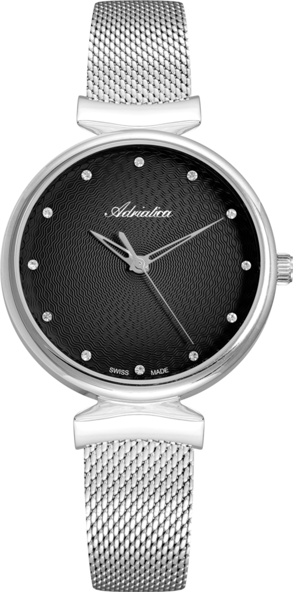 vyrábí kvalitní hodinky s puncem švýcarské kvality swiss made. Hodinky této značky mají přednost v poměrně slušné ceně, která je spojená s opravdu slušnou kvalitou. Tak například co se týče strojků, tak Adriatica používá švýcarské Ety a Ronda.Pánské hodinky Adriatica oplývají ladnými decentními designy a hodinky této řady jsou určené především do společnosti. Kvalita spojená s dobrou cenou činí z této značky vyhledávaný artikl pro spojitost sloganu za dobrou kvalitu dobrou cenu.Dámské hodinky Adriatica jsou elegantních designů a nadčasovost modelů je vyráběná s precizní detailností. Silné zlacení šperkových modelů zajistí krásný vzhled hodinek na mnoho let při běžném denním nošení, kvalitní fasování kamínků zajistí trvalé zdobení hodinek zjemněním.