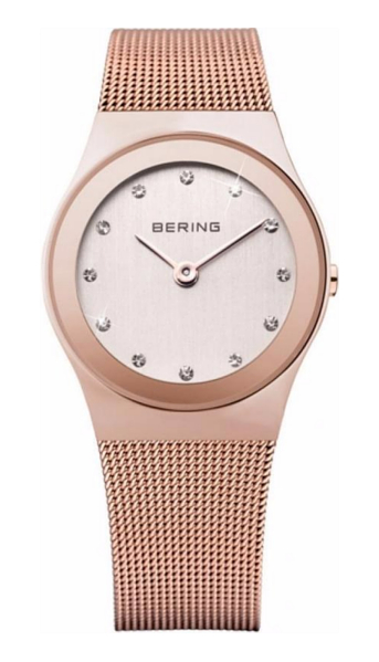 dominují svojí ladností a čistými, moderněelegantními designy. Převládá zde bílá či černá lesklá keramika, která působí na zápěstí velmi elegantně, až chladivě příjemně. Dámské hodinky Bering jsou dominantou celé kolekce této severské značky. Společenské modely jsou mnohdy dokrášleny kamínky a spolu s keramickými doplňky tvoří kompaktní "ledový" šperk. Pánské hodinky Bering jsou klasičtějších tvarů a barev, ale najdou se zde modely, které každopádně zaujmou svojí originalitou. Značka Bering je velmi mladá a přesto si velmi rychle získává oblibu v široké veřejnosti lidí mladého i středního věku. Založena roku 2008 v Dánsku vsází na čistotu hodinek, která se odráží od nádherné a mnohdy ještě nedotčené přírody Dánska. V hodinkách jsou používané jedny z nejosvědčenějších strojku na světovém trhu Myiota japan. Taktéž materiály jsou zde vybírány obzvláště pečlivě - nejčastěji zde máme kombinace nepoškrabatelné keramiky a ušlechtilé nerez oceli. Nápad ztělesnit nádhernou čistou přírodu Arktidy do hodinek dostal dobrodruh Rene Kaerskov, když seskočil z helikoptéry do těchto nedotčených zimních krajů. Čistota a ladnost chladivé přírody jej natolik nadchla, že přemýšlel, jak nejlépe tento pocit přenést k lidem. Zvolil formu šperku a to šperku hodinkového - okouzlení Arktidy se snaží přenášet do malých rozměrů designových hodinek. Název Bering nesou hodinky po známém mořeplavci, který první proplul úžinou a prozkoumal Aljašku - Vitus Bering. Všechny prvky hodinek korespondují s ledovým králostvím severské Arktidy - blýskavé zirkony jako kousky ledu, bílá keramika jako sníh a ladná tenkost hodinek jako plocha Arktidy. Beringy jsou společenské a nadčasově elegantní.