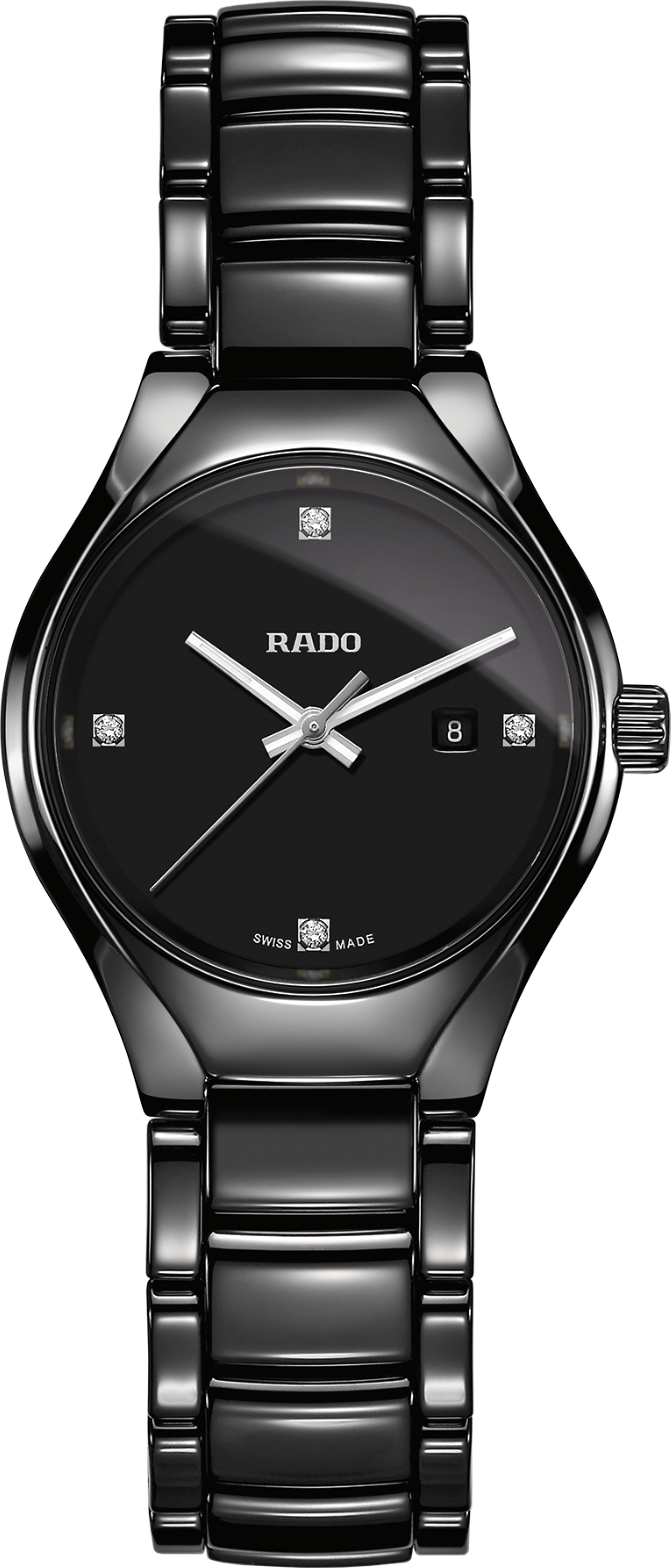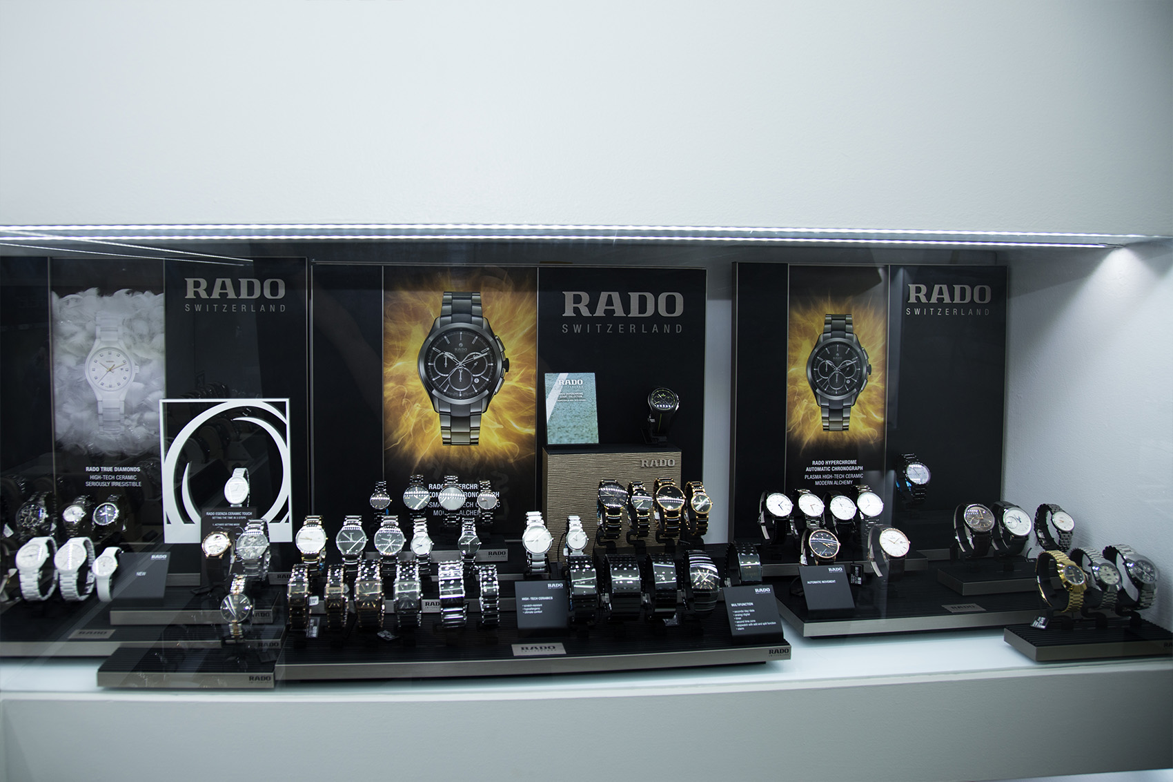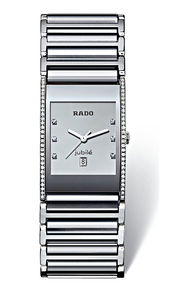 jsou jiné než ostatní klasické hodinky a svými ladnými designy plnými technické lehkosti jsou velmi oblíbené. Pánské hodinky Rado jsou synonymem luxusu, který je jiný. Luxusu, který nenechá nikoho bez povšimnutí. Luxusu, který ohromí. A jsou to právě Rada, která podpoří eleganci každého muže mnohem víc, než běžné designy klasických hodinek. Pánské Rada jsou zkrátka vrchol technické elegance. Dámské hodinky Rado mají stejné designy jako hodinky pánské, ale jsou pochopitelně menší. Jemnost modelů, kterými Rado vyniká, dovoluje dělit pánské a dámské hodinky pouhou velikostí. Proto se velmi často vyrábí sety Rado - stejné hodinky pro oba manžele. Avšak nejen tvary a barvami se Rado odlišuje od průměru, ale i materiály - tato švýcarská značka ponejvíce vyrábí pouzdra a náramky z nepoškrabatelných materiálů jako např. keramika. Společně poté v kombinaci těchto materiálů se safírovými skly se stávají hodinky Rado kompletně nepoškrábatelnými. Historie Rada se datuje od roku 1917, kdy byla založena společnost Schlup & Co. Tuto firmu založili tři bratři - Fritz, Ernst a Werner Schlup. Tato manufaktura, sídlící ve Švýcarském Lengnau, vyráběla pouze strojky. Až v roce 1957 vyrábí Rado první hodinky a využívá převratné technoligie do té doby nikým nepoužitelné - nepoškrábatelné materiály na výrobu pouzder a náramků. Zpočátku se nesetkával tento nápad s pozitivní odezvou od zákazníků, posléze však byl počáteční neúspěch překonán a s prvními spokojenými zákazníky obraty prudce rostou. První modelová řada se nazývala a dodnes nazývá DiaStar Original. Volí opravdu tvrdé materiály - keramika, lanthan nebo hardmetal (wolfram - titan - karbid). V roce 2004 byla realizována nová technologie HighTech - tato modelová řada se nazývá V10K. Rado získává během svého času několik prestižních ocenění za design. Ocenění je získáno i za box na hodinky, který imituje ruku. Rado využívá ke zjemnění designů svých hodinek pravé diamanty vysoké kvality, které rozzáří tmavěmodrou či černou lesklou barvu tvrdé keramiky a model tak získává na ještě větší líbivosti a luxusu. Od roku 1993 je Rado člen společnosti SMH, později největšího výrobce hodinek na světě švýcarského Swatch groupu. Dnes značka Rado zaměstnává přibližně 300 zaměstnanců a vyrábí půl milionu hodinek ročně. Švýcarské hodinky Rado se vyrábí z několika základních materiálů: 1. High-Tech Keramika - Scratchproof High-tech Ceramic HTC. Velmi tvrdý materiál odolný proti poškrábání, který je na stupnici mezi čísly 1.200 - 1.900 Vickers. Je velmi příjemný na dotyk, protože je hladký bez ostrých hran. Další výhodou je lehkost tohoto materiálu. High-Tech Keramika se vyrábí v lesklém i matném provedení, v černé, tmavěmodré či bílé barvě. Tato technoligie je patentována značkou Rado a vynalezli ji technici Rada roku 1986. Všechny hodinky Rado s touto technologií mají ochrannou známku. 2. High-Tech Diamant HTD - Scratchproof High-tech Diamond. Prakticky nejtvrdší ze všech variant. Povrchová úprava této konstrukce je tvrdá jako diamant a na stupnici tvrdosti zaujímá nejvyšší pozici s číslem 10.000 Vickers. První hodinky s touto povrchovou úpravou byly dokonce zapsány do Guinessovy knihy rekordů jako nejtvrdší hodinky na světě. Tvrdost tohoto materiálu je na stupnici č.10, tzn. stejné, jako např. diamant. A diamant je nejtvrdší nerost na světě. Safírové sklo je také velmi tvrdé, ale safírové sklo je umělý korund a je na stupnici č.8. S porovnáním ocel nebo platina jsou na stupnici u čísla 2. Díky mnohaletému výzkumu a využívání nejmodernější nanotechnologie jsou hodinky Rado s touto povrchovou úpravou prakticky jedny z nejtvrdších hodinek na světě. 3. Scratchproof Ceramos. Tato úprava byla zavedená do výroby roku 1993. Tento velmi lehký materiál se rychle přizpůsobuje teplotě kůže a díky tomu nabízí bezkonkurenční pohodlí pro nošení. Tento materiál byl navržen tak, aby měl optimální vlastnosti kovu a keramiky. Ceramos je směs (spékání) keramického materiálu s karbidem titanu s kovovou příměsí a vydrží tlak až 1.000 barů a na stupnici tvrdosti je u čísel mezi 1.400 - 1.900 Vickers. Tento materiál je ještě o něco tvrdší než high-tech keramika s rozdílem odstínu, který na rozdíl od černé či tmavěmodré keramiky má barvu stříbrného kovu. 4. Scratchproof High-tech Lanthanum. Jeden z nejtvrdších materiálů na světě, který se těží v západní Austrálii, střední Africe a Brazílii. 5. Scratchprof Plasma High-tech ceramic - Plasma HTC. Materiál barvy nejčastěji kovové, ale může být přibarvován i na barvy jiné, např. zlatou. Tvrdostí je výše než keramika (na stupnici Vickers se pohybuje nad číslem 1.300). Při běžném denním nošením nepoškrabatelné. 6. Scratchproff Hardmetal HM. Materiál odolnější (tvrdší) než keramika a na stupnici tvrdosti se nachází mezi čísly 1.400 - 1.700 Vickers. Tento tvrdokov začala značka Rado používat už od roku 1962. 7. Scratchproof HM/CVD - Coated Hardmetal. Povrchová úprava velmi tvrdým kovem, který je při běžném nošení nepoškrabatelný. Tato úprava má tvrdost Hardmetalu, tzn. tvrdost 1.400 - 1.700 Vickers. Co se týče materiálů, které jsou nejčastěji používané v hodinářském průmyslu, pro úplnost je nutné dodat, že nejměkkčím materiálem pro výrobu hodinek je zlato, které se pohybuje na stupnici Vickers v hodnotách 100 - 200 Vickers. Hned vedle zlata je platina, která má tvrdost 110 - 140 Vickers. Poté následuje ocel, která se pohybuje od 200 - 900 Vickers (nejčastěji 225 Vickersových stupňů). Na dalším místě je titanium, který se pohubuje od 300 - 400 Vickers. Dal