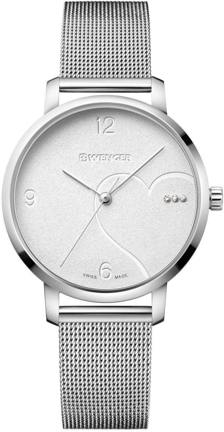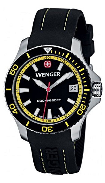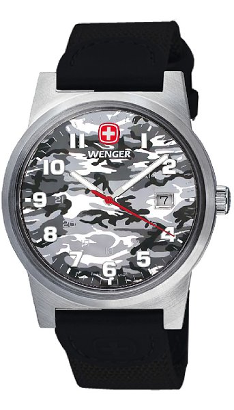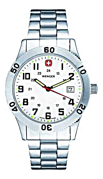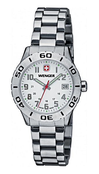 jsou hodinky skupiny Watch S.A. a jsou konstruovány tak, aby byly na zápěstí pevné a k tomu dobře čitelné.Pánské hodinky Wenger jsou nejobvykleji masivnějších větších modelů sportovnějšího charakteru doplněné základním chronografem s důrazem na dobrou čitelnost i za šera. Čitelnost zde tvoří silné kontrastní číslice nebo indexy téměř vždy vyplněné ilumuniscenční vrstvou, která v noci svítí. Pouzdra jsou spíše masivnější a k tomu navazují i kovové tahy. Odstín oceli je nejčastěji v kombinaci lesku a matu - lesk oživuje praktický mat. Dámské hodinky Wenger mají opět víceméně sportovní nádych, díky kterému jsou nejen skvěle vodotěsné, ale krásně přehledné. Právě v přírodě oceníte tyto vyjímečné hodinky - jejich skvělou čitelnost i za tmy (všechny modely mají silnou iluminiscenční vrstvu na ručkách i v číslicích či indexech), skvělou nárazuodolnost (všechny modely mají zesílené křemíkové sklo a zesílené pouzdro pro odolnost proti nárazům) a lehkost (Wenger používá lehkou kvalitní ocel s označením 316L). Na svých číselníkách nosí punc kvality swiss made, který udává informaci o původu země výroby. Díky tomu jsou zárukou spolehlivosti, kvality a preciznosti. Hodinky této značky používají špičkové strojky švýcarské výroby značky Rondo a spolu s dobře známou švýcarskou propracovatelností pouzder a pásků zaručuje pro každý model punc kvality pro dlouhá léta nošení. Na Wengery poskytujeme spolu s kompletním pozáručním servisem nadstandartní záruku 36 měsíců. Značka Wenger byla založena roku 1893 a začala s výrobou nožů. Perfektní tvrdá ocel zaručovala již tehdy nadprůměrnou kvalitu pro ostří nožů a díky tomu stoupající poptávku po výrobcích této švýcarské značky. Hodinky přišly na řadu mnohem později - Wenger zde využívá známosti své značky spojenou s vysokou kvalitou a tuto kvalitu zachovává ve všech směrech i u hodinek. Designy hodinek jsou odpovídající myšlení Wengeru - masivnější modely s trochou elegance, vytříbený vkus do přírody. Švýcarské hodinky Wenger nacházejí svoji oblibu u zákazníků hledající sportovní design. Na zápěstí majitele jsou vkusným a zároveň praktickým pomocníkem. Všechny Wengery jsou konstruovány na hrubší zacházení a právě již na první pohled je toto cítit. Širší lunety propůjčují designu modelů atraktivitu sportu. Nevšední pestrá škála barev zde také hraje svoji roli - vedle klasické elegantní stříbrné zde máme jasné červené a modré barvy. Tyto barvy zaujmou a hodinky jsou celkově kontrastnější. Iluminiscenční vrstva, většinou zelené barvy, nanesená na ručičkách a mnohdy i v indexech či číslicích nám umožňuje krásně číst čas i za šera a v noci. Wenger hodinky mají svoji přednost v prvotřídní oceli, která je nejen antialergická a houževnatá, ale i poměrně lehká. Tato ocel se vyznačuje stabilitou barvy a při precizním opracování pouzder a kovových tahů též velmi příjemným nošením. Wenger totiž vyrábí ty nejkvalitnější ocelové tahy. Jejich kvalita spočívá v litině - lité články jsou krásně opracované a zahlazované, takže na zápěstí příjemně sedí. Pouzdra jsou kvalitně utěsňována a díky důrazu na přesnost jsou vodotěsné i tlačítka chronografů a korunky, které bývají nezřídka na závit. Materiál pro sklíčka používá Wenger nejčastěji křemík pro jeho pružnost a tudíž nesnadnou rozbitnost. Safírovými skly osazuje Wenger poměrně zřídka, nevýhoda snadného prasknutí při silném nárazu však nekompenzuje výhodu nepoškrabatelnosti skla, která je opravdu praktická. Tato značka kombinuje ve svých hodinkách strojky Eta a Ronda - strojky s přesností 0 - 0,5 vteřin denně diference. Životnost těchto quartzových strojků je cca. 25 let - stejná, jako prakticky všech quartzových hodinkových strojků. Osazuje-li Wenger mechanickými automaty, nejčastěji nacházíme strojek Eta 2824, který je vyzkoušený desetiletími a dá se vyregulovat na přesnost 3 - 4 vteřiny denně.