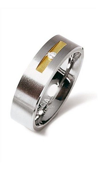 • Popis šperku:Prsten z matovaného titanu s prvky PVD zlacení, zdobený diamantem o váze 0,03 karátu