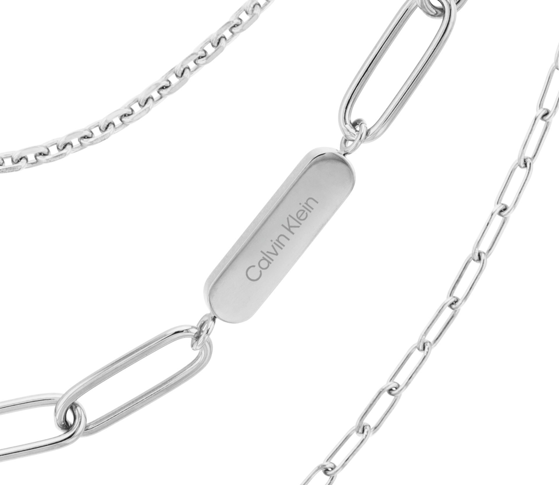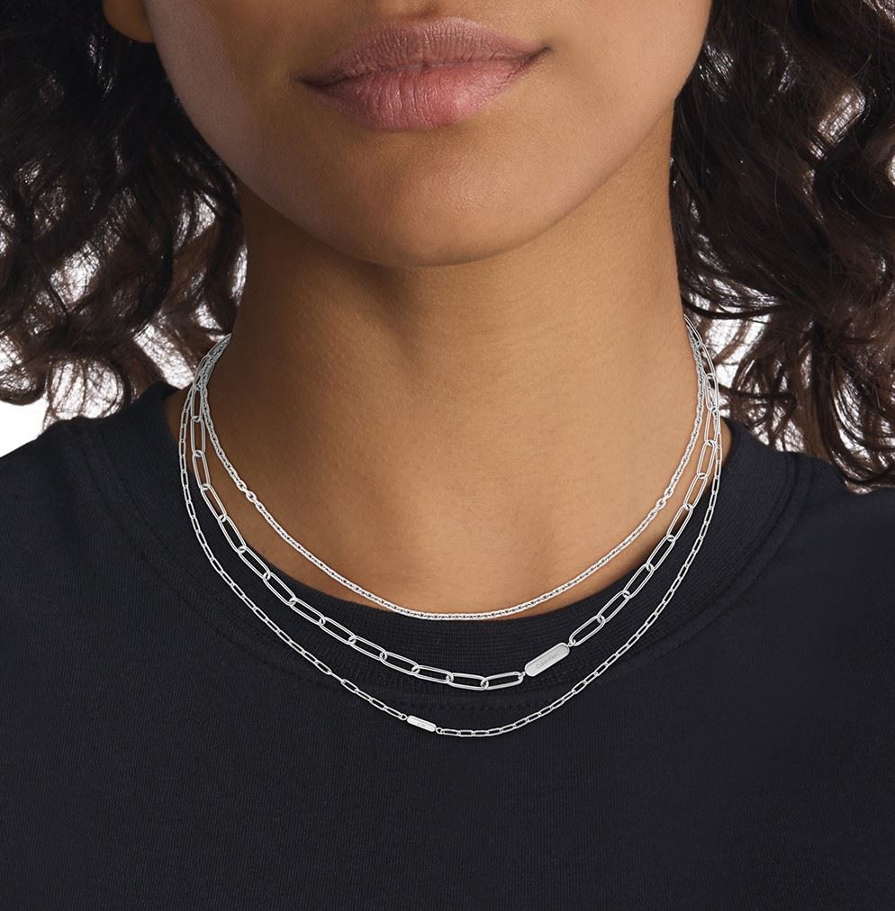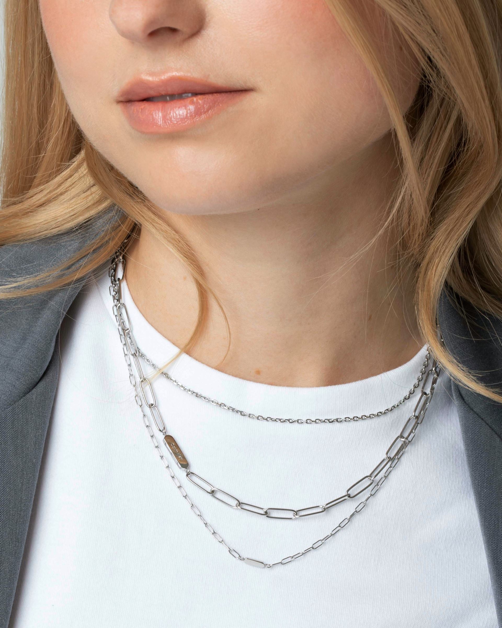 Sada dámských náhrdelníků z dílny značky Calvin Klein, vyrobené z kvalitní oceli, zapínání na karabinku, nechybí ani logo značky na konci náhrdelníku, délka náhrdelníků: 35cm; 40cm; 45cm s možností prodloužení o 5cm.