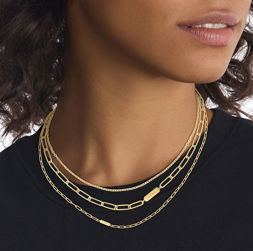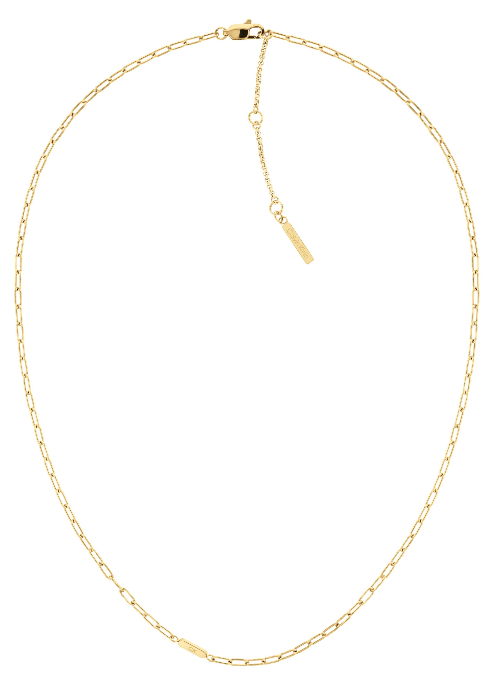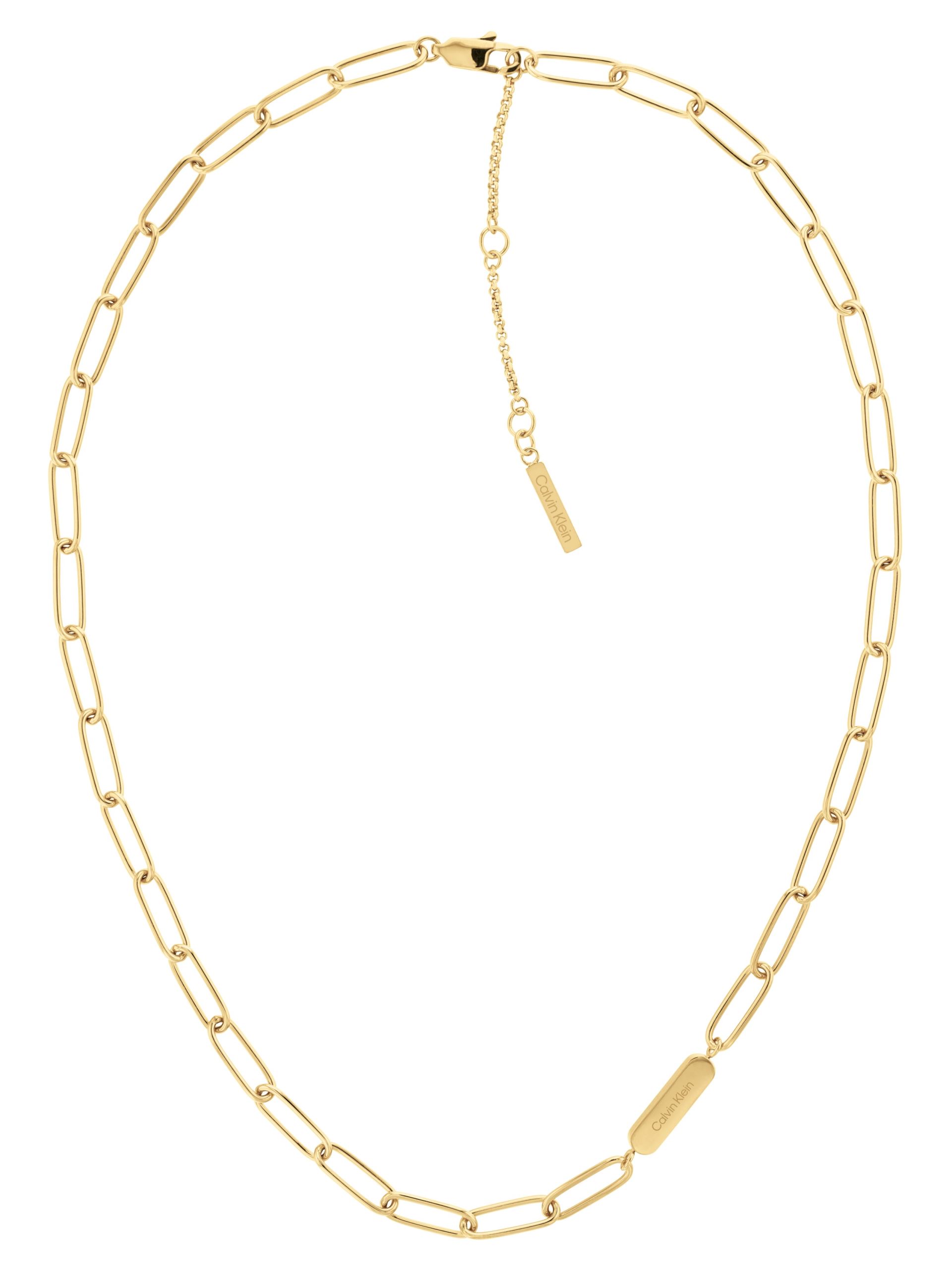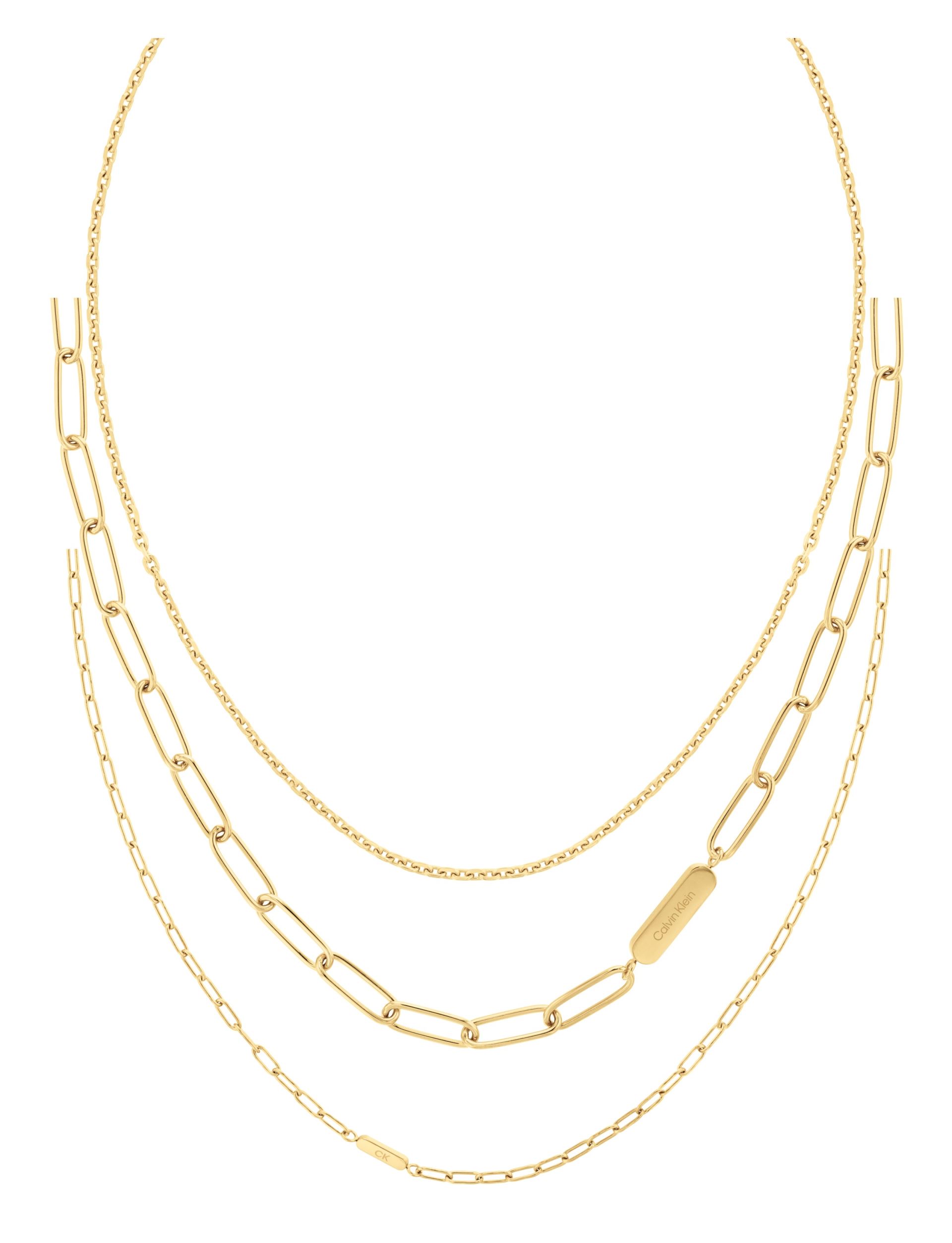 Sada dámských náhrdelníků z dílny značky Calvin Klein, vyrobené z kvalitní oceli, pozlacené žlutým zlatem, zapínání na karabinku, nechybí ani logo značky na konci náhrdelníku, délka náhrdelníků: 35cm; 40cm; 45cm s možností prodloužení o 5cm.