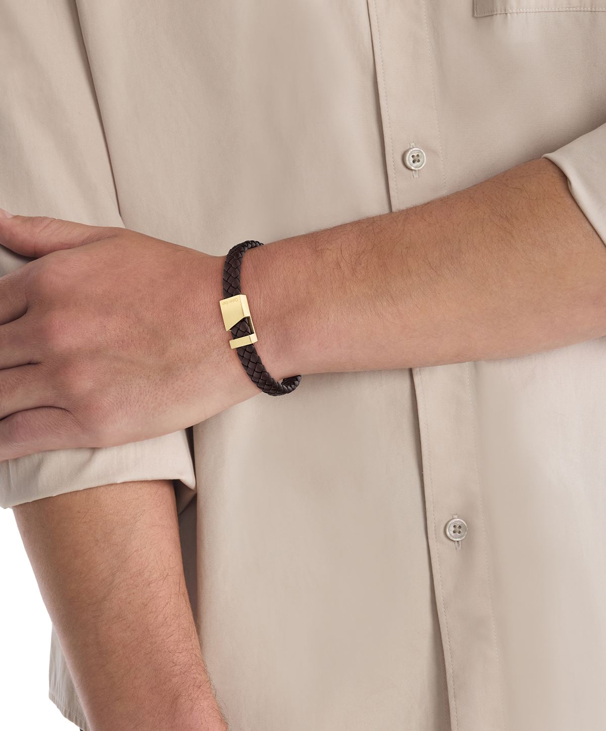 Elegantní pánský náramek z dílny značky Calvin Klein, vyrobený z kvalitní tmavě hnědé kůže, díky pozlacené ocelové ozdobě náramek hezky vyniká, nechybí ani logo značky, délka náramku: 22 cm, obvod náramku: 19,5 cm.