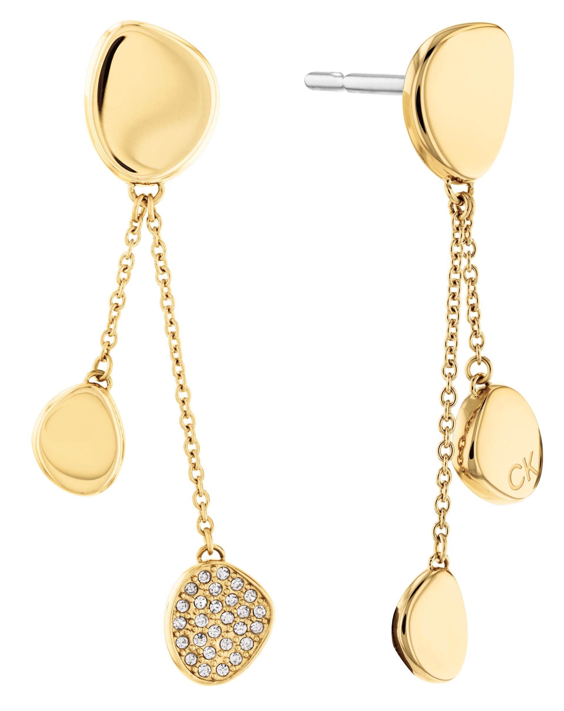 Exkluzivní náušnice značky Calvin Klein, jsou vyrobené z vysoce kvalitní oceli, pozlacení žlutým zlatem propůjčuje šperku punc luxusu, na první pohled vás zaujme asymetrické provedení, jednu náušnici zdobí třpytivé zirkony, na druhé náušnici je vygravírované logo značky, délka náušnic: 5 cm, zapínání na bezpečnostní puzetku.