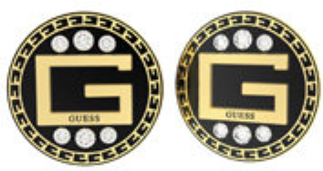 Černo-zlaté naušnice z chirurgické oceli jsou zdobené kamínky Swarovski a uprostřed mají zlatě vygravírované logo G. Průměr 13 mm.