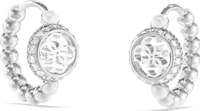 Moderní kruhové náušnice Guess z nerezové oceli s perličkami.