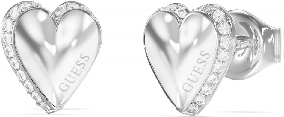 Peckové náušnice Guess z nerezové oceli ve tvaru srdce zdobené krystaly.