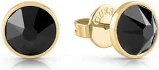Jemné náušnice zdobené černým zirkonem a nápisem Guess, v barvě zlatá. Průměr: 0,8 cm