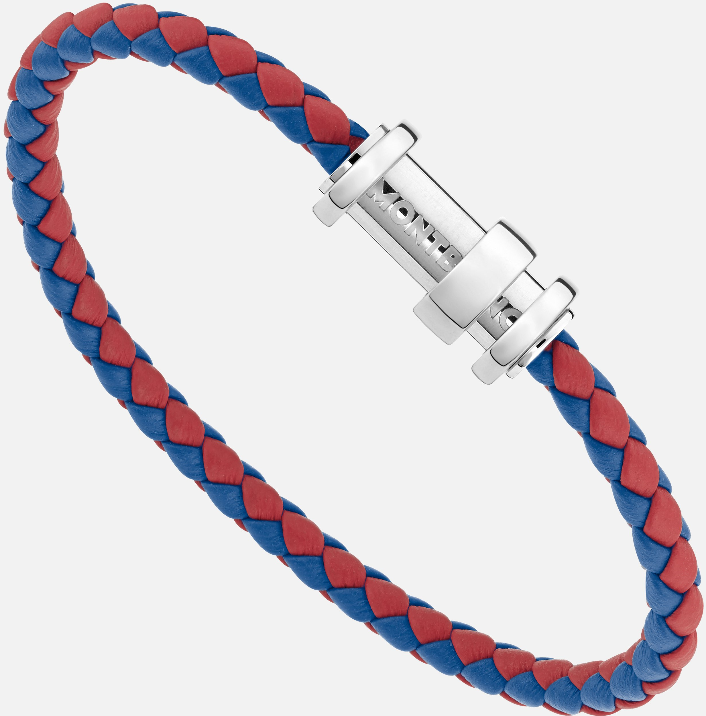 Pánský pletený červenomodrý kožený náramek se sponou z nerezové oceli