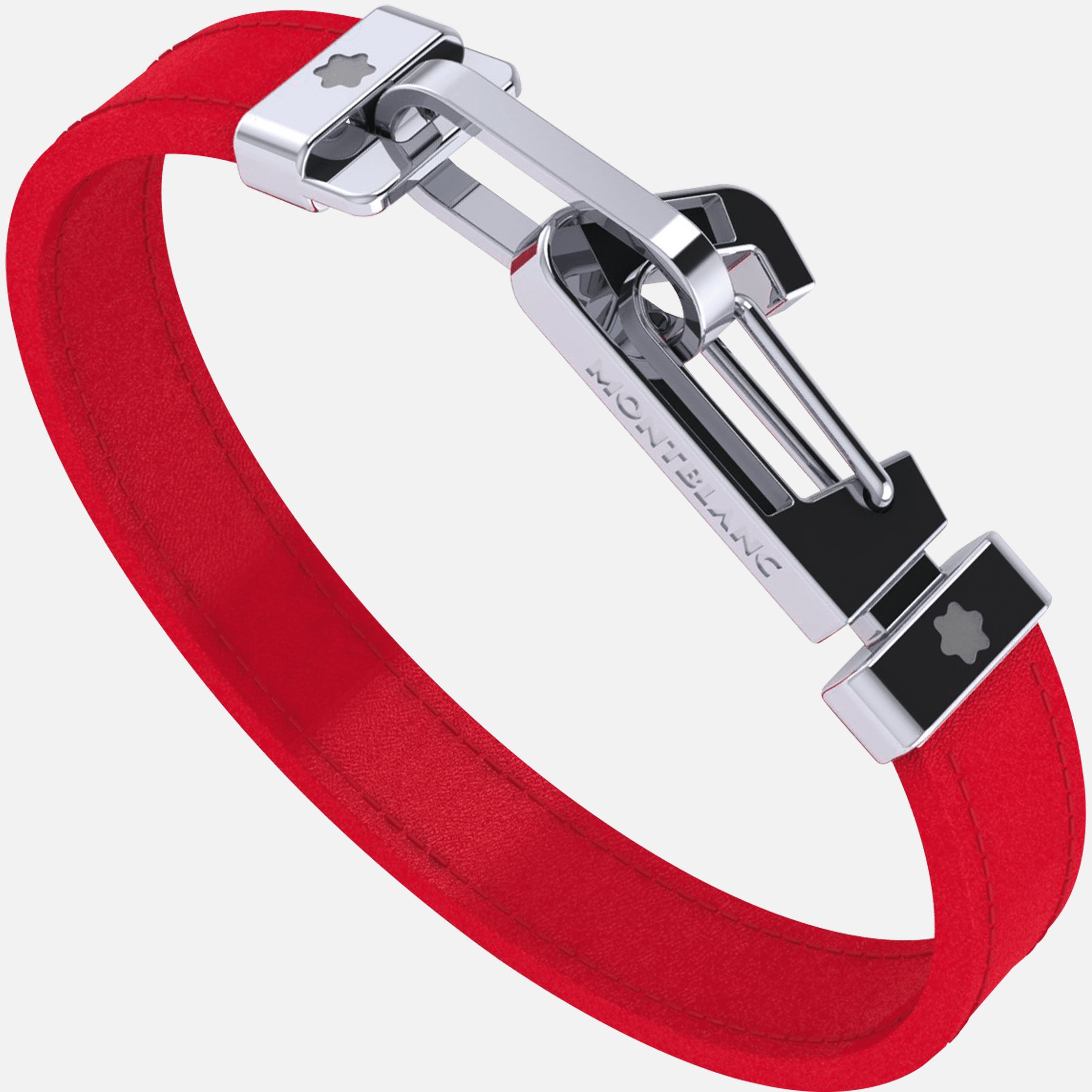 Montblanc - Náramek - MB12382568 - Bracelet in red leather with carabiner closure in stainless steel