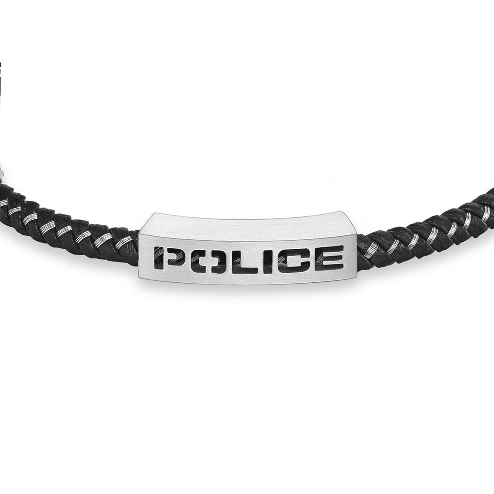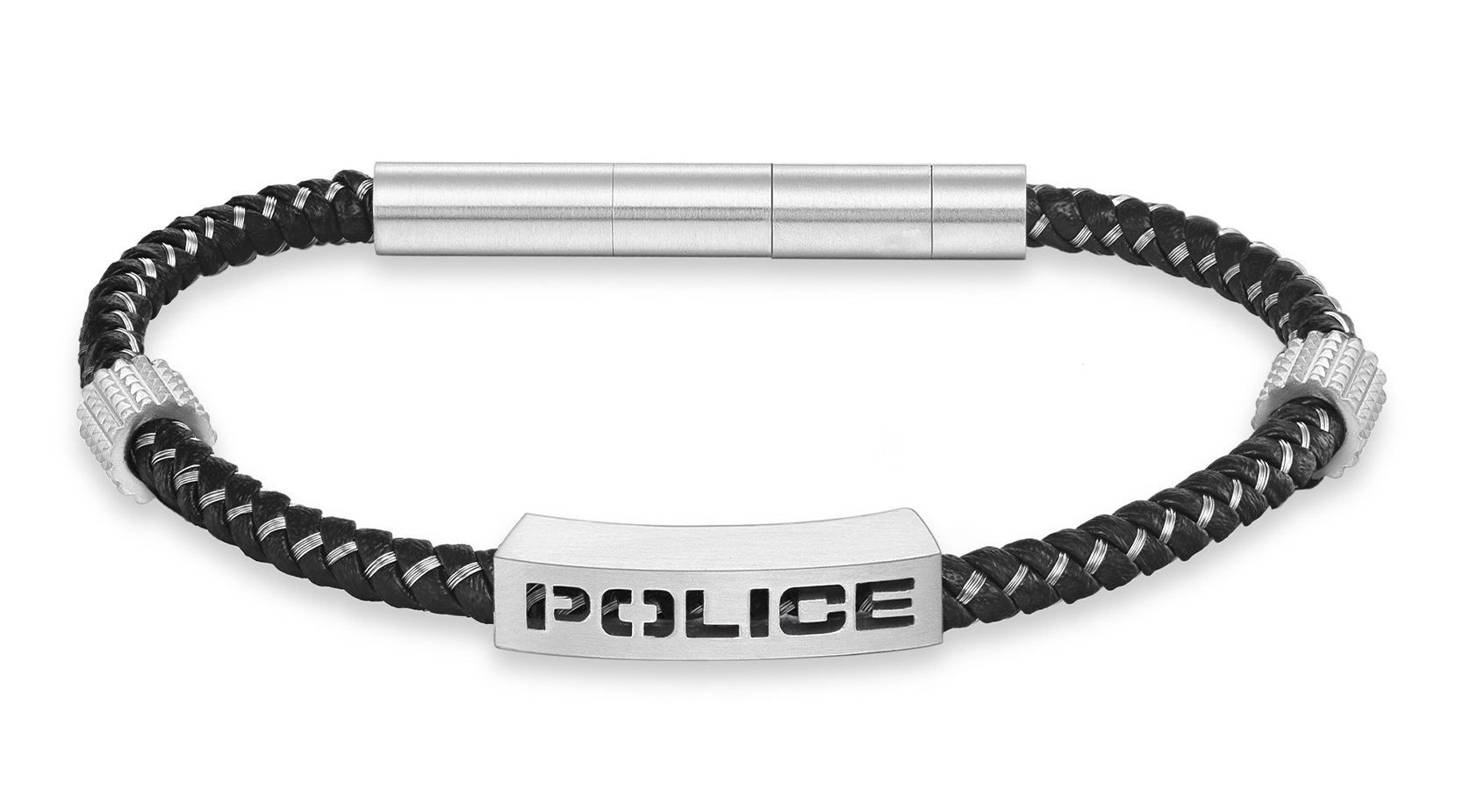 Moderní náramek pro muže od značky Police, vyrobený z propletené černé kůže a oceli, střed náramku dekoruje ocelová ozdoba s vyříznutým názvem značky, délka náramku: 21 cm s možností zkrácení o 2 cm, příjemně se nosí díky magnetickému zapínání.