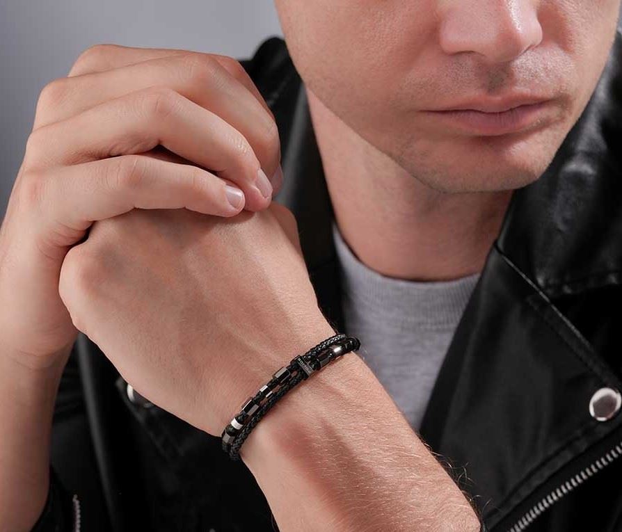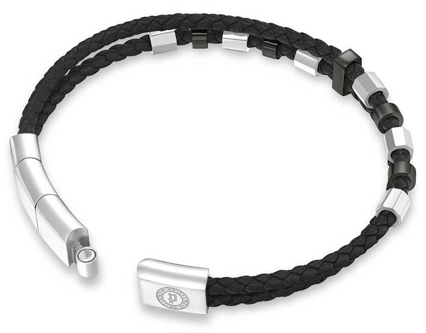 Stylový dvojitý náramek pro muže od značky Police, vyrobený z proplétané hnědé kůže, doplněný o ocelové korálkové ozdoby, ocel je upravená černým PVD pokovením a zlatým PVD povlakem, délka náramku: 19 cm, pohodlné zapínání pomocí magnetu.