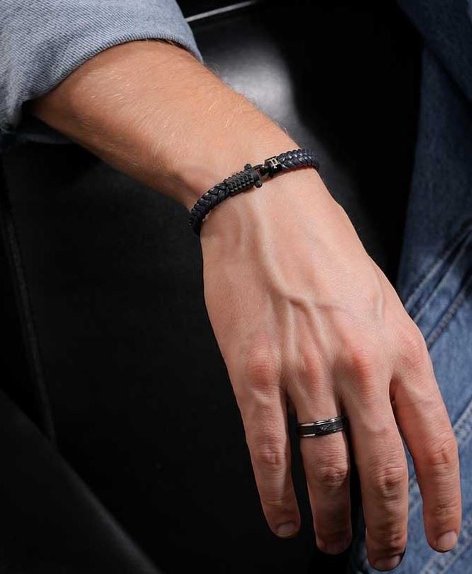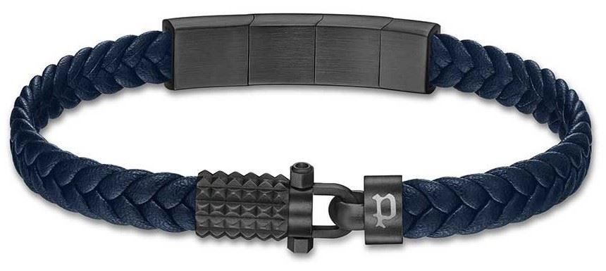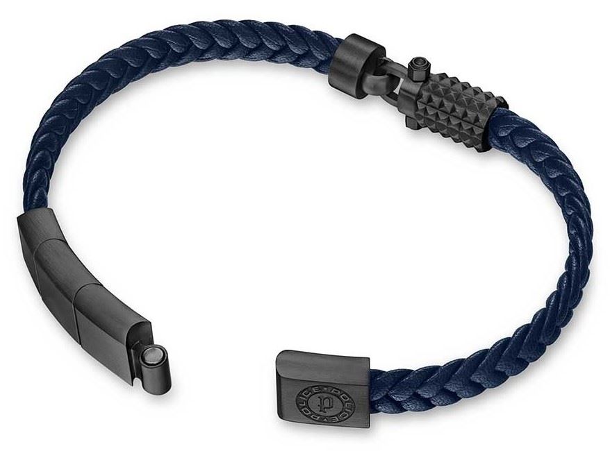 Stylový náramek pro muže z dílny značky Police, vyrobený z propletené kvalitní modré kůže, dekorovaný originální ozdobou z oceli s pyramidovým vzorem, ocel je upravená černým PVD pokovením, nechybí ani známé logo značky, délka náramku: 21 cm s možností zkrácení o 2 cm, zapínání na magnet.