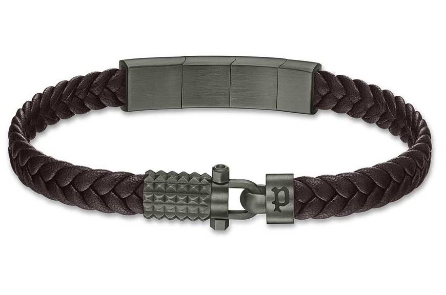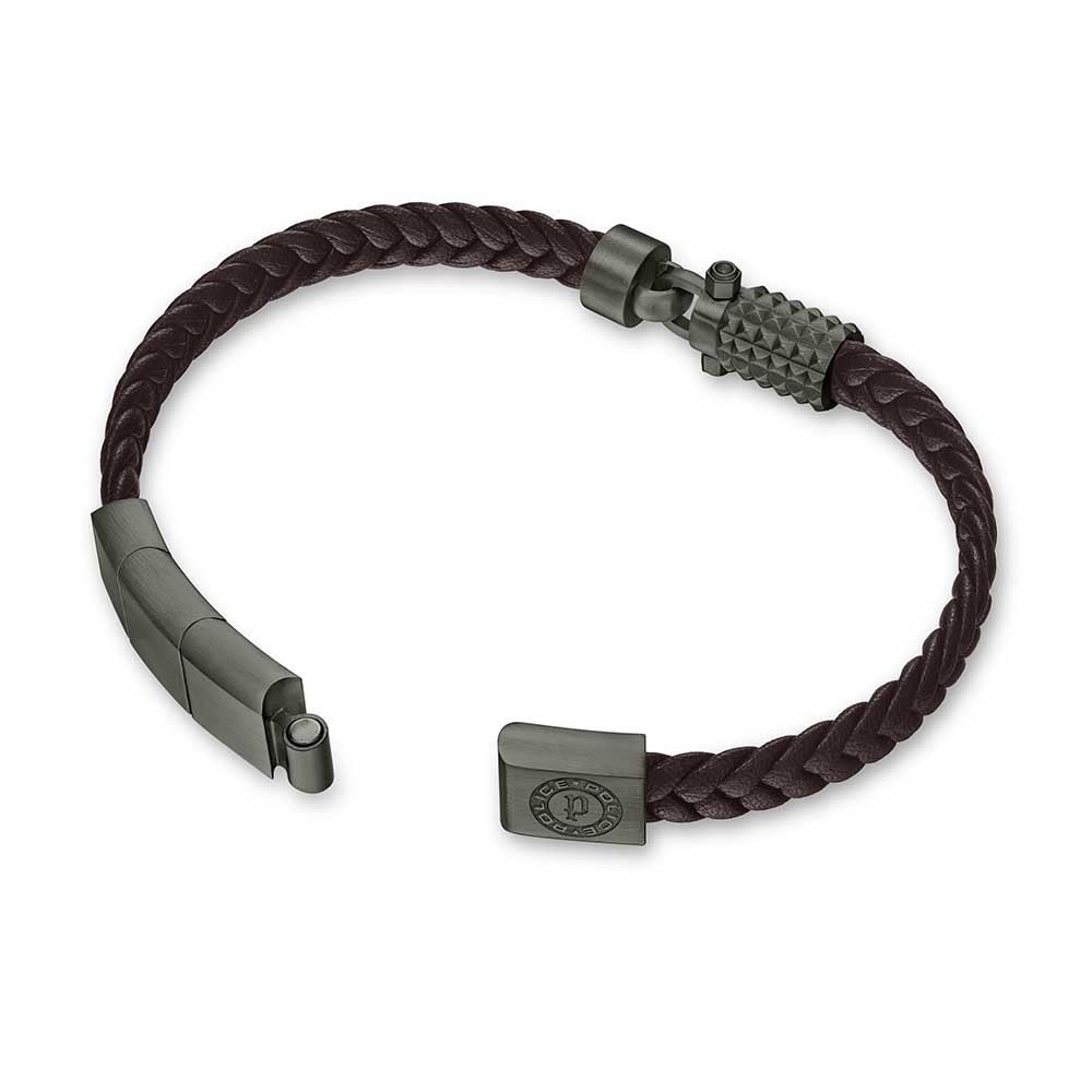 Stylový náramek pro muže z dílny značky Police, vyrobený z propletené kvalitní hnědé kůže, dekorovaný originální ozdobou z oceli s pyramidovým vzorem, ocel je upravená černým PVD pokovením, nechybí ani známé logo značky, délka náramku: 21 cm s možností zkrácení o 2 cm, zapínání na magnet.