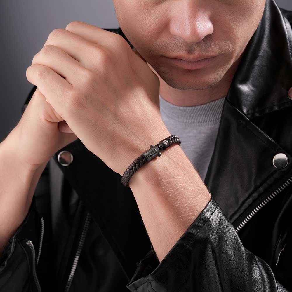 • Barva šperku:Kovově černá (chirurgická ocel povrchově upravená černým odolným PVD povrchem) + kůže