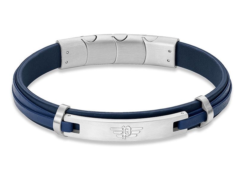 Fashion pánský náramek od značky Police, vyrobený z kvalitní modré kůže, dekorovaný stylovou ozdobou z matné ocelidélka náramku: 19 cm, zapínání pomocí magnetické spony.