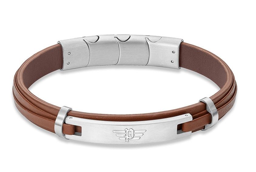 Fashion pánský náramek od značky Police, vyrobený z kvalitní hnědé kůže, dekorovaný stylovou ozdobou z matné ocelidélka náramku: 19 cm, zapínání pomocí magnetické spony.