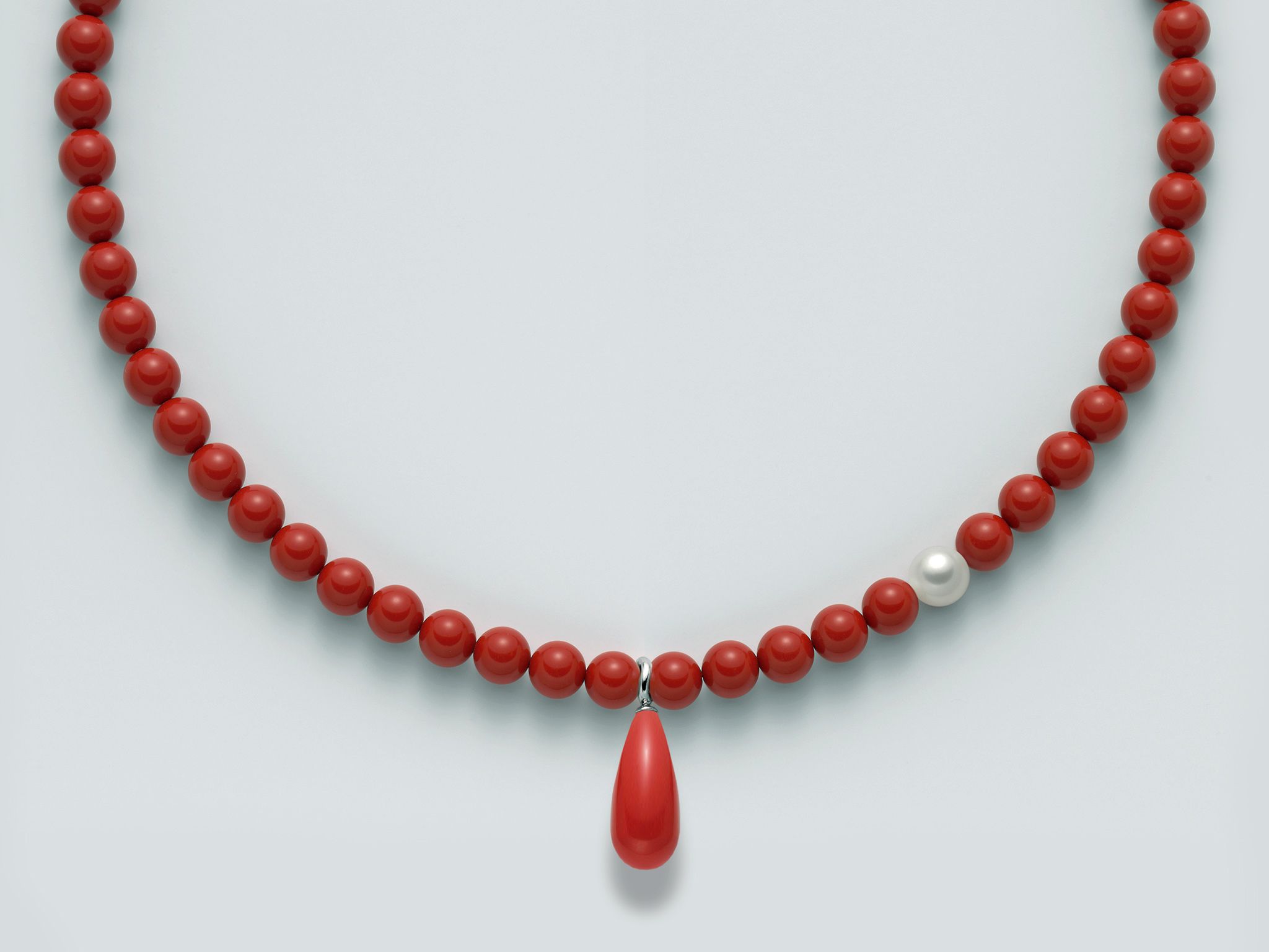 Stříbro (925/1000) Nr 1 Pearls LR Col. White 8-8,5 Fl 1 Conglomerate Col. red coral mm 8 Nr 1 Conglomerate Col. red coral Drop mm 20x10 Precision casting