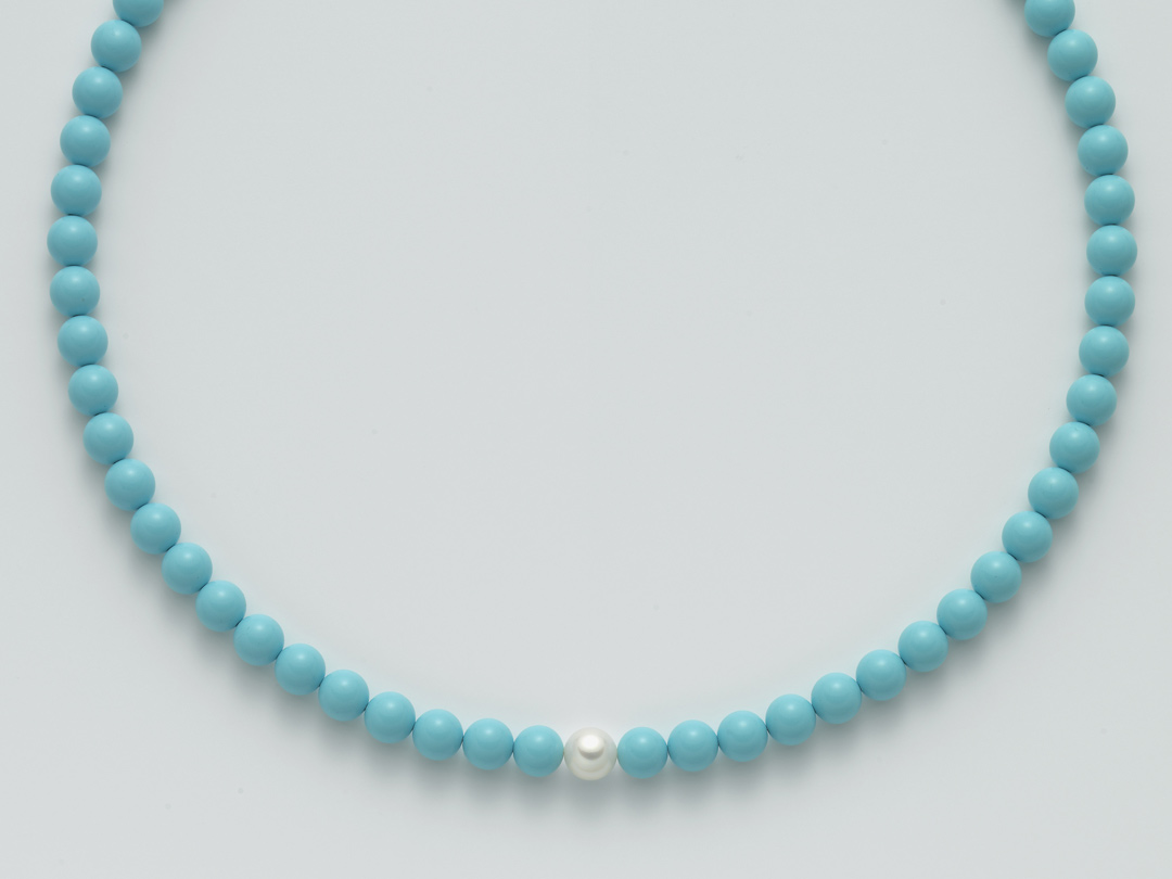 Stříbro (925/1000) Nr 1 Pearls LR Col. White 8,5-9 Fl 1 Conglomerate Col.turquoise mm 8 Precision casting