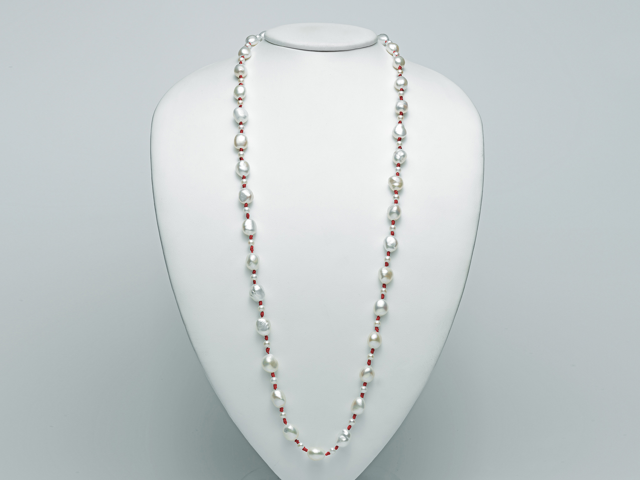 Stříbro (925/1000) Fl 1,43 Pearls Orient baroque Col. White 11-12 Fl 0,55 Pearls LR Col. White 5-5,5 Hollow tube Red cotton string