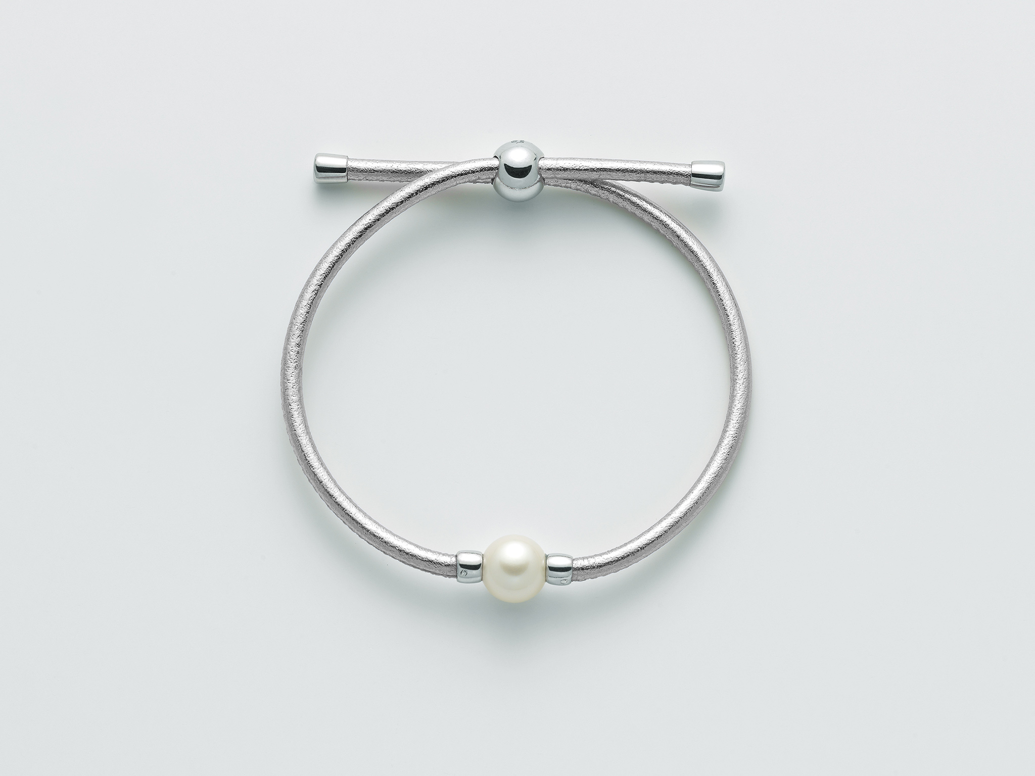 Stříbro (925/1000) Nr 1 Pearls MR Col. White 8,5-9 Silver-grey leather components