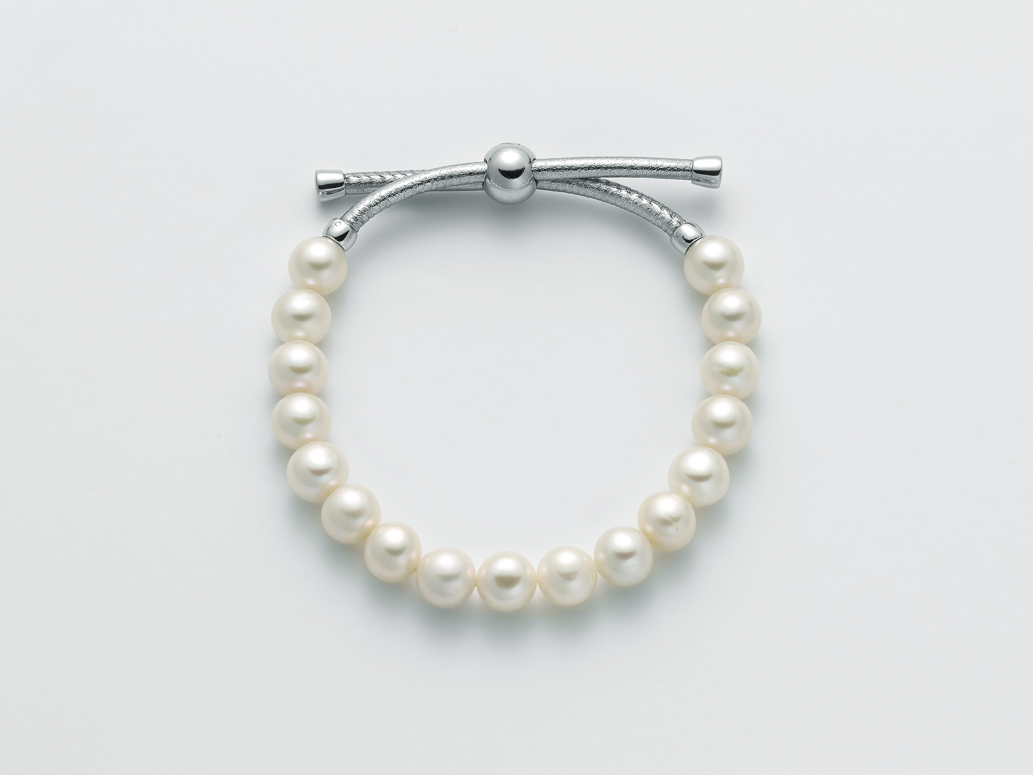 Stříbro (925/1000) Fl 0,33 Pearls MR Col. White 7,5-8 Silver-grey leather components
