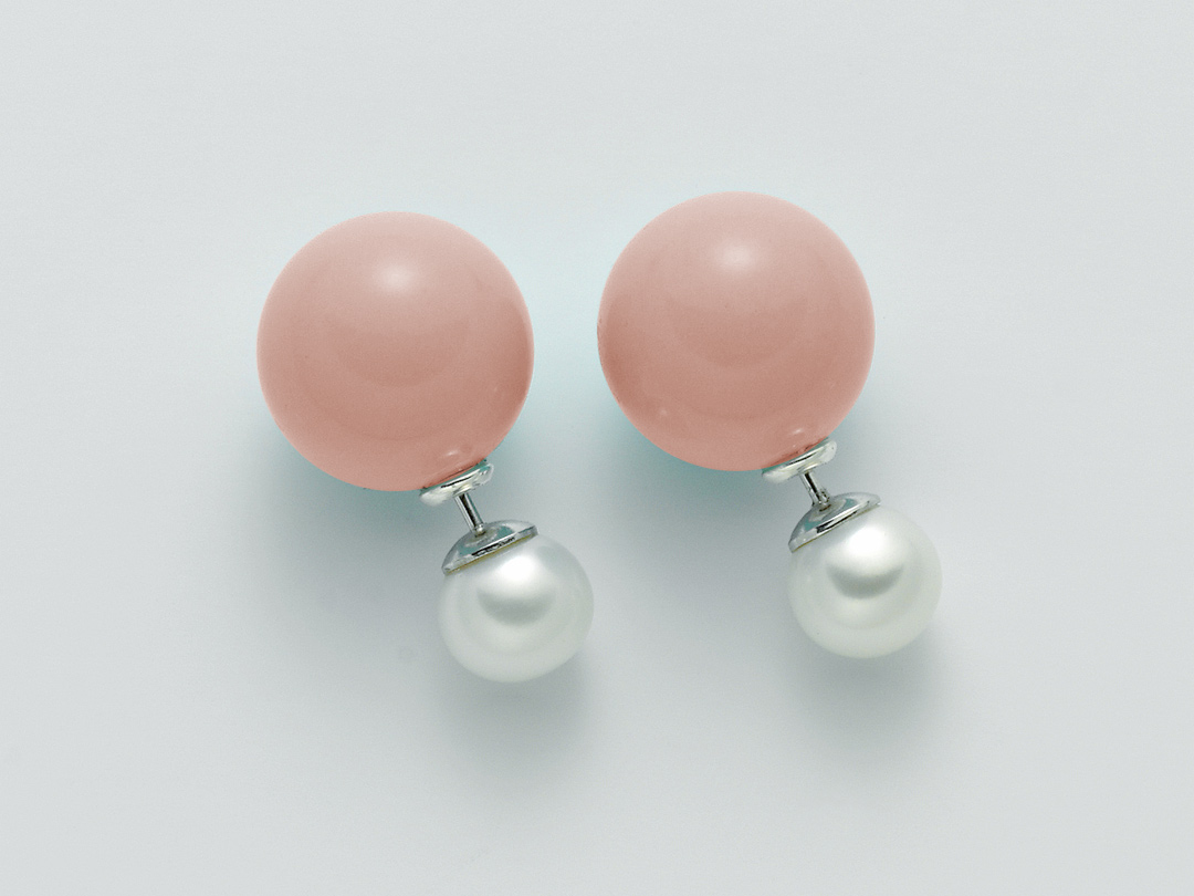 Stříbro (925/1000) Nr 2 Pearls R Col. White 8,5-9 Nr 2 Conglomerate Col. light rose coral mm 16
