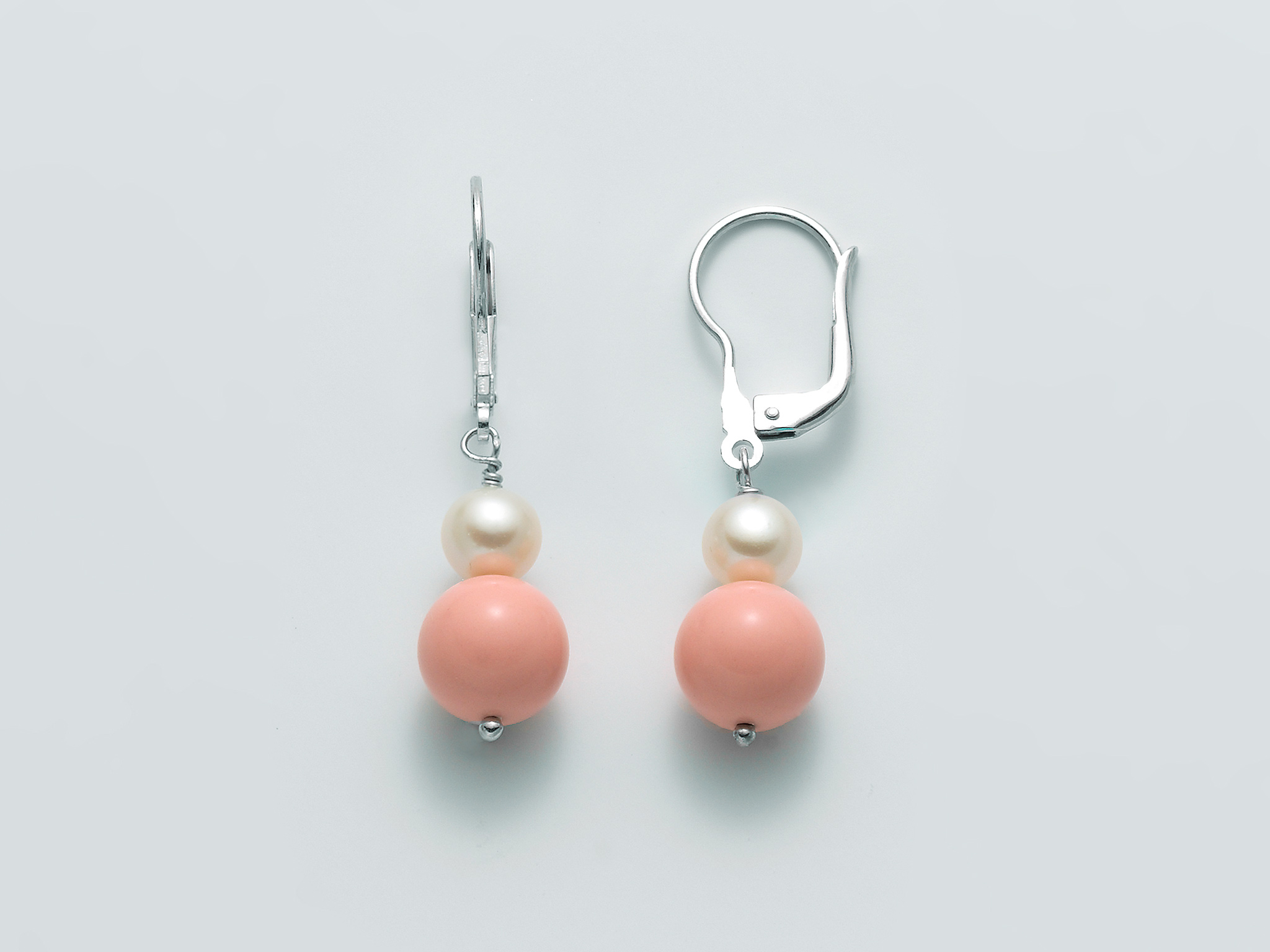 Stříbro (925/1000) Nr 2 Pearls MR Col. White 6,5-7 Fl 0,05 Conglomerate Col. light rose coral mm 10
