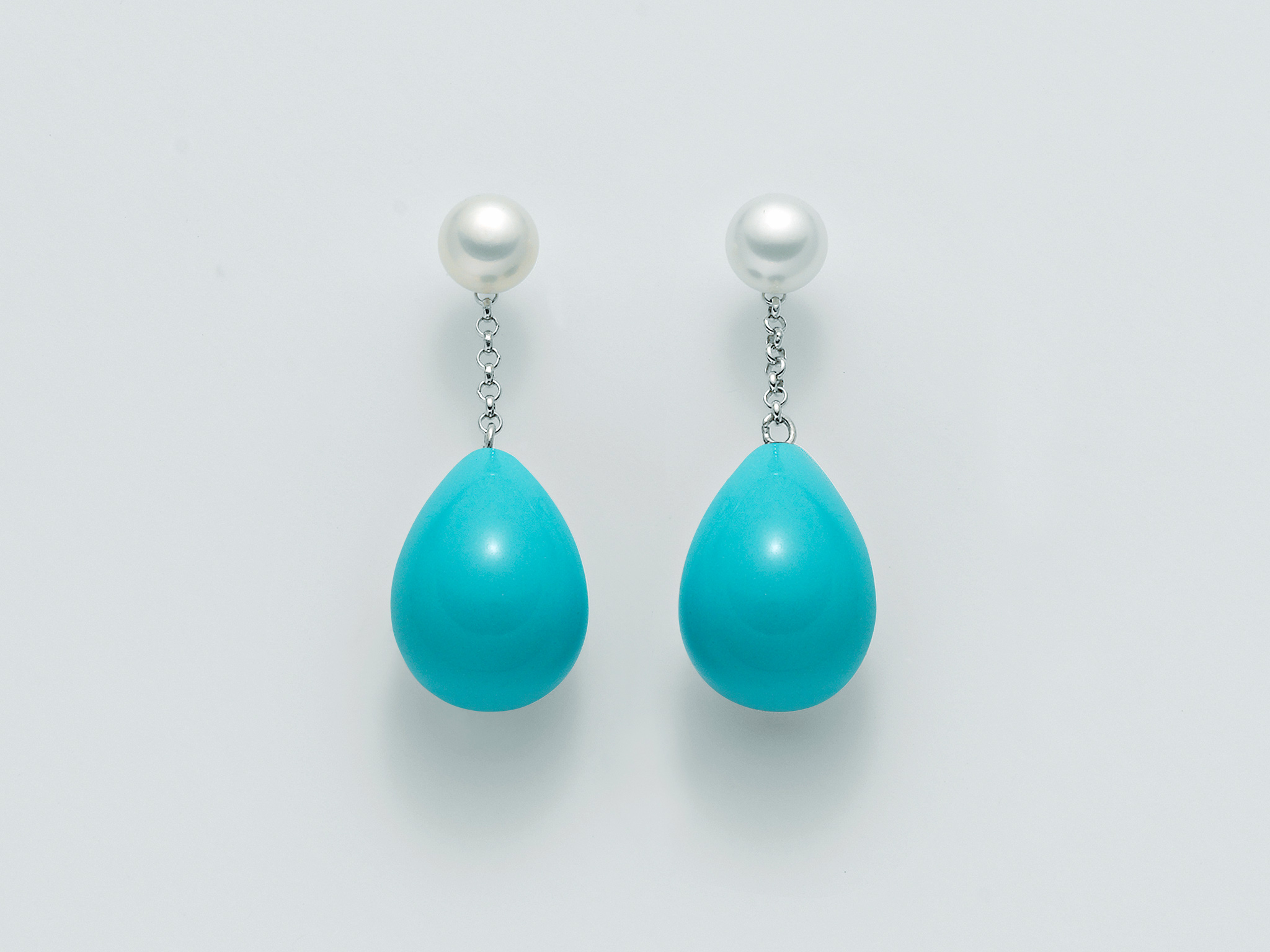 Stříbro (925/1000) Nr 2 Pearls Button Col. White 6,5-7 Nr 2 Conglomerate Col.turquoise Drop mm 13X18