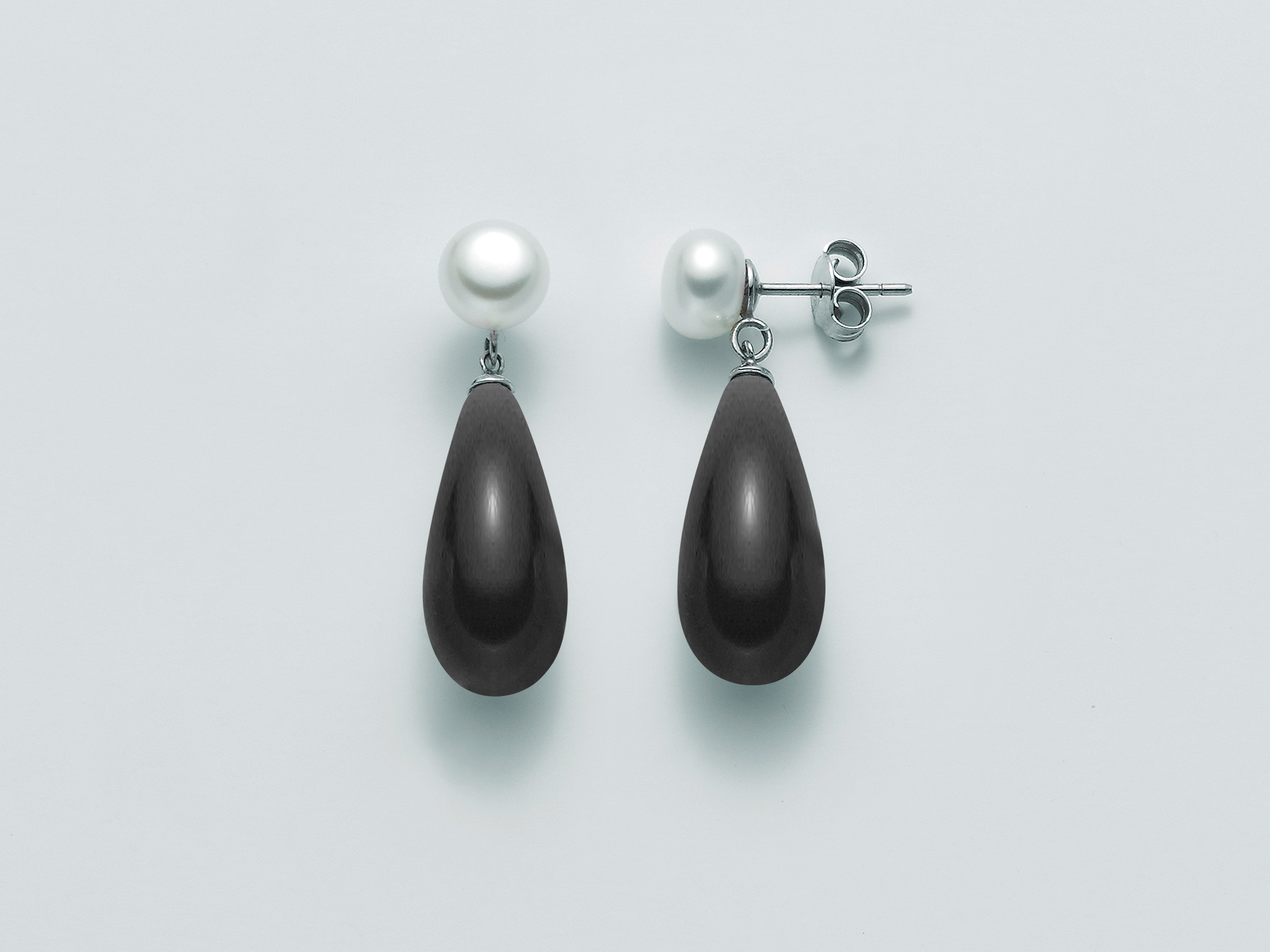 Stříbro (925/1000) Nr 2 Pearls Button Col. White 7-7,5 Nr 2 Conglomerate Col. black onyx Drop mm 20x10