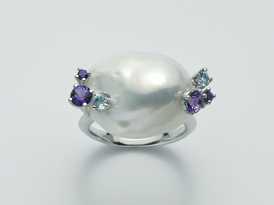 Stříbro (925/1000) Nr 1 Top Quality Pearls Orient Baroque pearl core Col. White 12-14 Nr 2 Gem of the Sky natural topaz Round mm 3 Ct 0,28 Nr 2 Topaz Violet color Round mm 2 Ct 0,08 Nr 2 Topaz Violet color Round mm 4 Ct 0,64 Precision casting Griffes